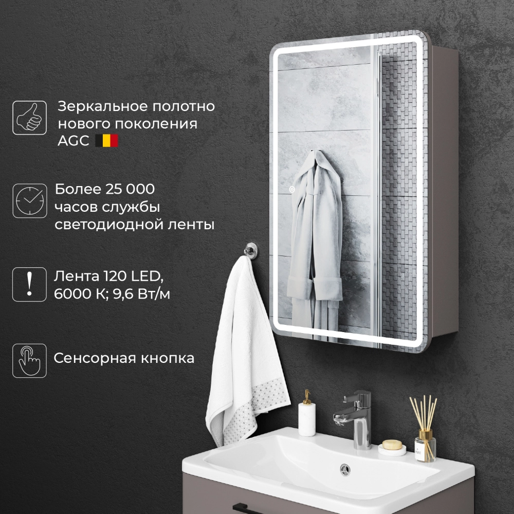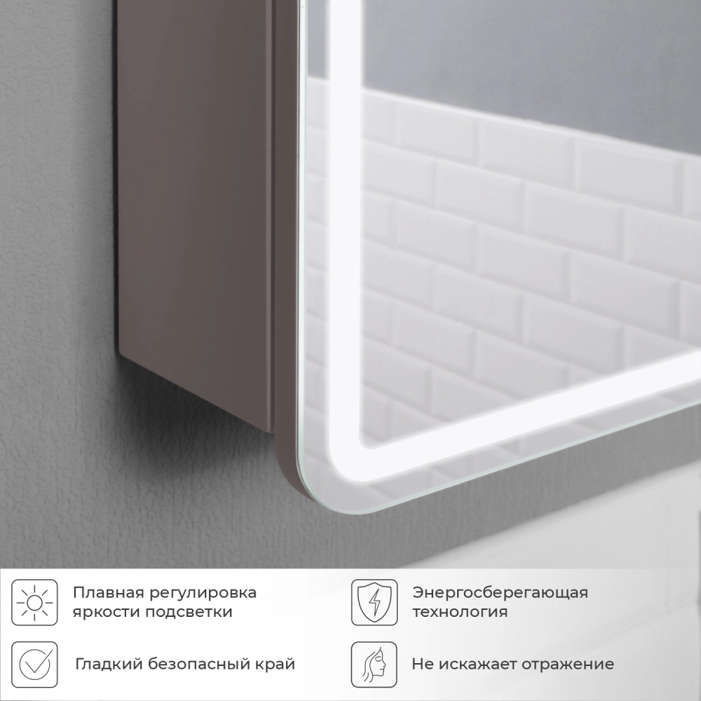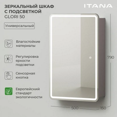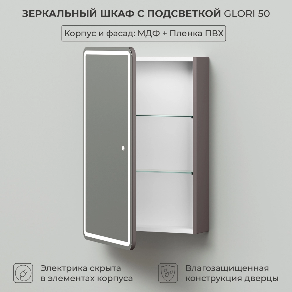 Зеркальный шкаф с подсветкой Итана Glori 50 1С универсальный Амаретти