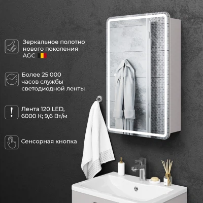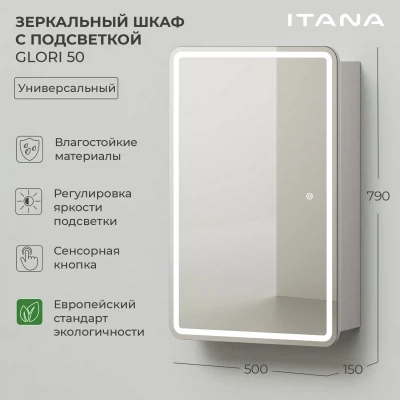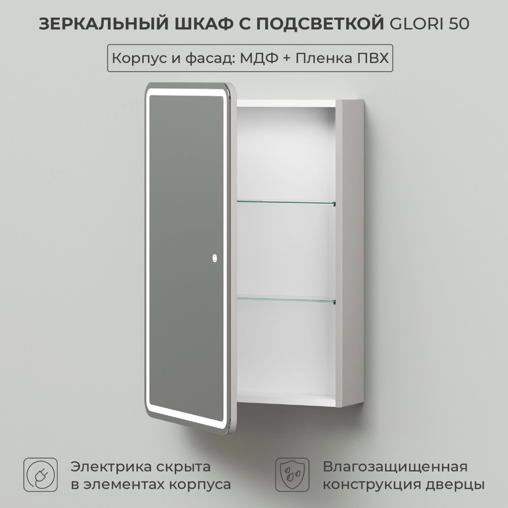 Зеркальный шкаф с подсветкой Итана Glori 50 1С универсальный Керамик