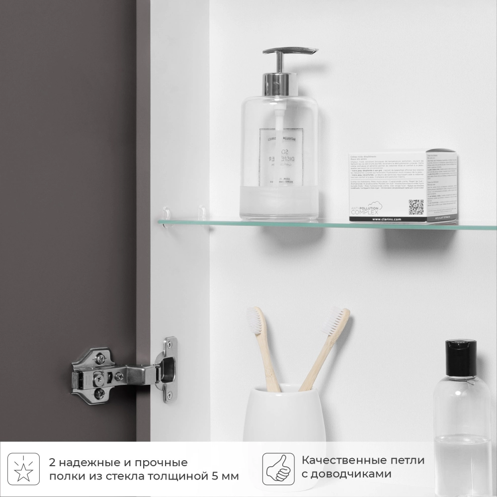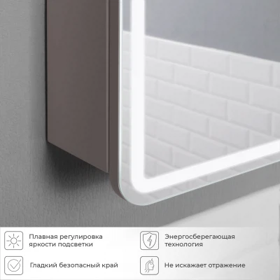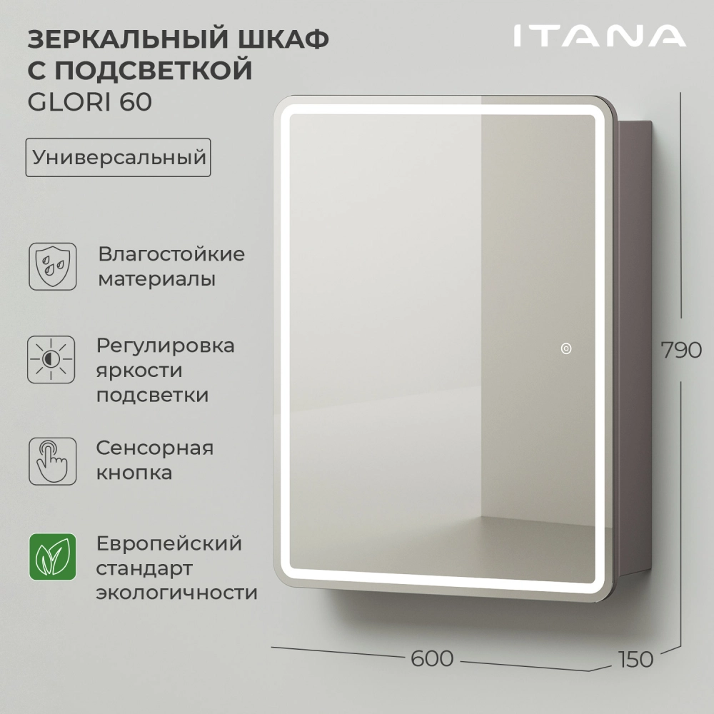 Зеркало-шкаф Итана Glori 60 с подсветкой соединяет в себе стильный дизайн и практичность использования. Размеры изделия составляют 600х150х790 мм, что обеспечивает достаточное пространство для хранения различных ванных принадлежностей. Особенностью данного зеркала является интегрированная подсветка, которая не только создает комфортные условия для нанесения макияжа или бритья, но и добавляет уютную атмосферу за счет мягкого и приятного света. Зеркальный шкаф в ванную оборудован одной дверцей, что обеспечивает удобный доступ ко всем полочкам внутри. Настенное крепление позволяет разместить его на удобной для вас высоте. Благодаря встроенной подсветке, вам не потребуется дополнительное освещение возле зеркала – это особенно актуально для тех, кто ценит удобство и экономию пространства. Для точного выбора шкафа с зеркалом в ванную комнату рекомендуем обратиться к схеме замеров, которая находится на фото в карточке товара, размеры изделия могут отличаться +/-1 см в связи со спецификой производства. Зеркальный шкаф с подсветкой доставляется в предварительно собранном виде, надежно упакован.