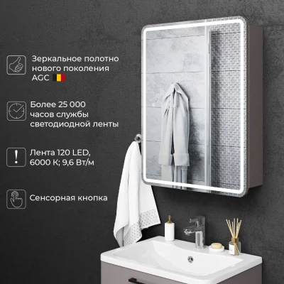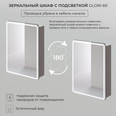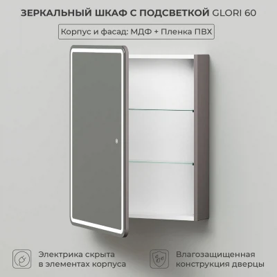 Зеркальный шкаф с подсветкой Итана Glori 60 1С универсальный Амаретти