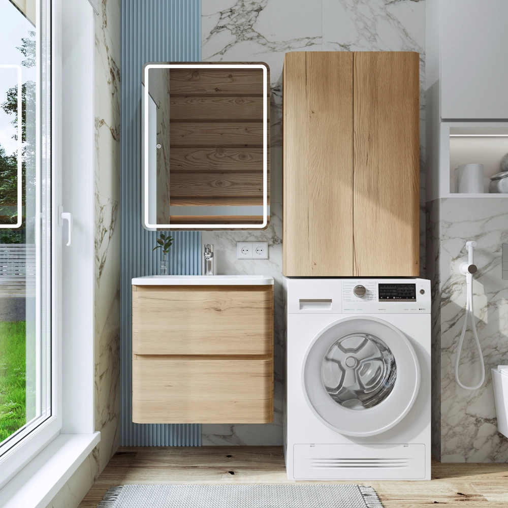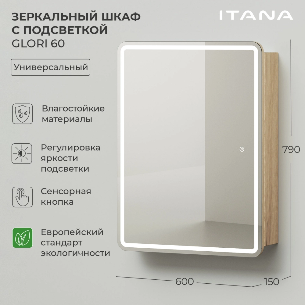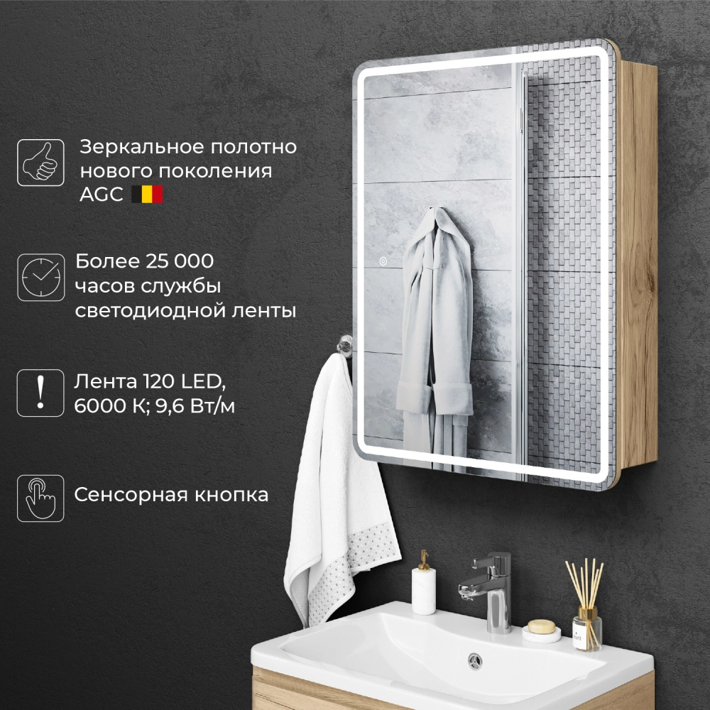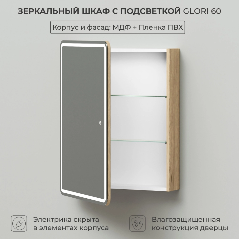 Зеркальный шкаф с подсветкой Итана Glori 60 1С универсальный Дуб Мавелла Голд