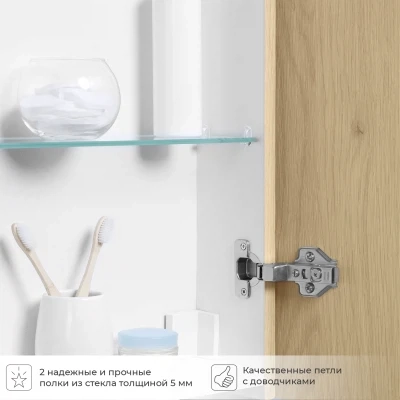 Зеркало-шкаф Итана Glori 60 с подсветкой соединяет в себе стильный дизайн и практичность использования. Размеры изделия составляют 600х150х790 мм, что обеспечивает достаточное пространство для хранения различных ванных принадлежностей. Особенностью данного зеркала является интегрированная подсветка, которая не только создает комфортные условия для нанесения макияжа или бритья, но и добавляет уютную атмосферу за счет мягкого и приятного света. Зеркальный шкаф в ванную оборудован одной дверцей, что обеспечивает удобный доступ ко всем полочкам внутри. Настенное крепление позволяет разместить его на удобной для вас высоте. Благодаря встроенной подсветке, вам не потребуется дополнительное освещение возле зеркала – это особенно актуально для тех, кто ценит удобство и экономию пространства. Для точного выбора шкафа с зеркалом в ванную комнату рекомендуем обратиться к схеме замеров, которая находится на фото в карточке товара, размеры изделия могут отличаться +/-1 см в связи со спецификой производства. Зеркальный шкаф с подсветкой доставляется в предварительно собранном виде, надежно упакован.