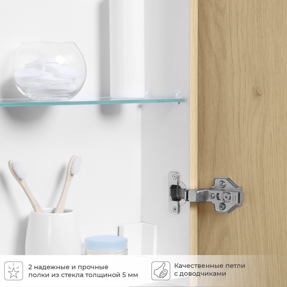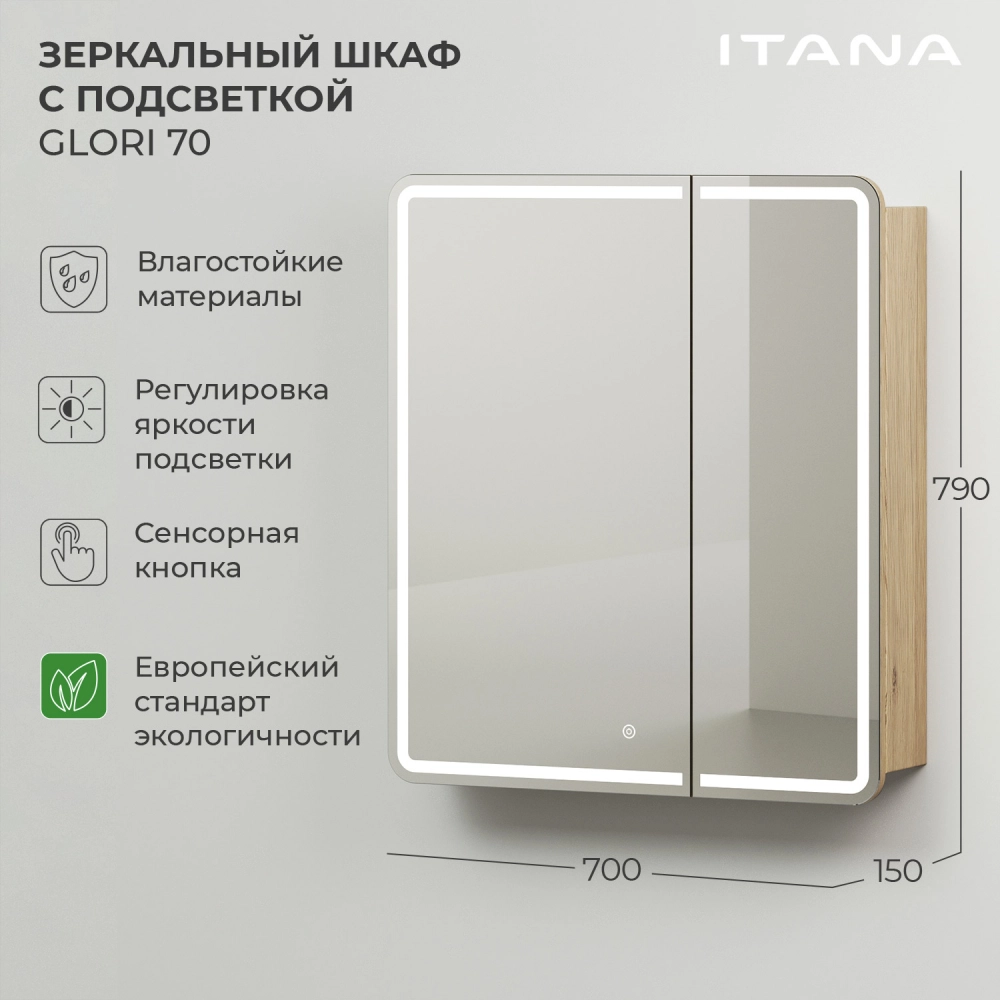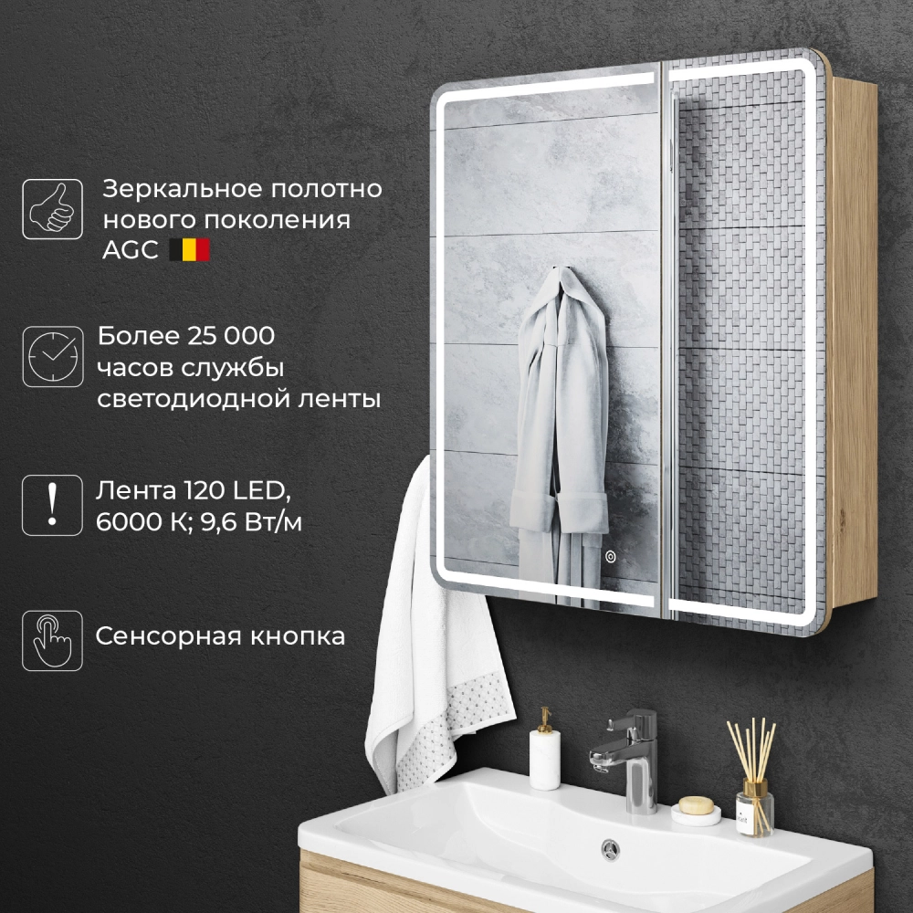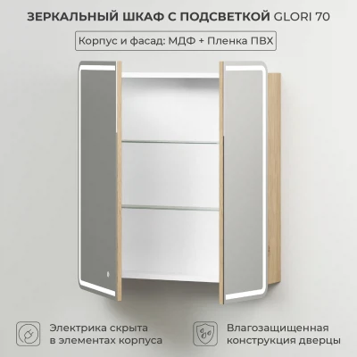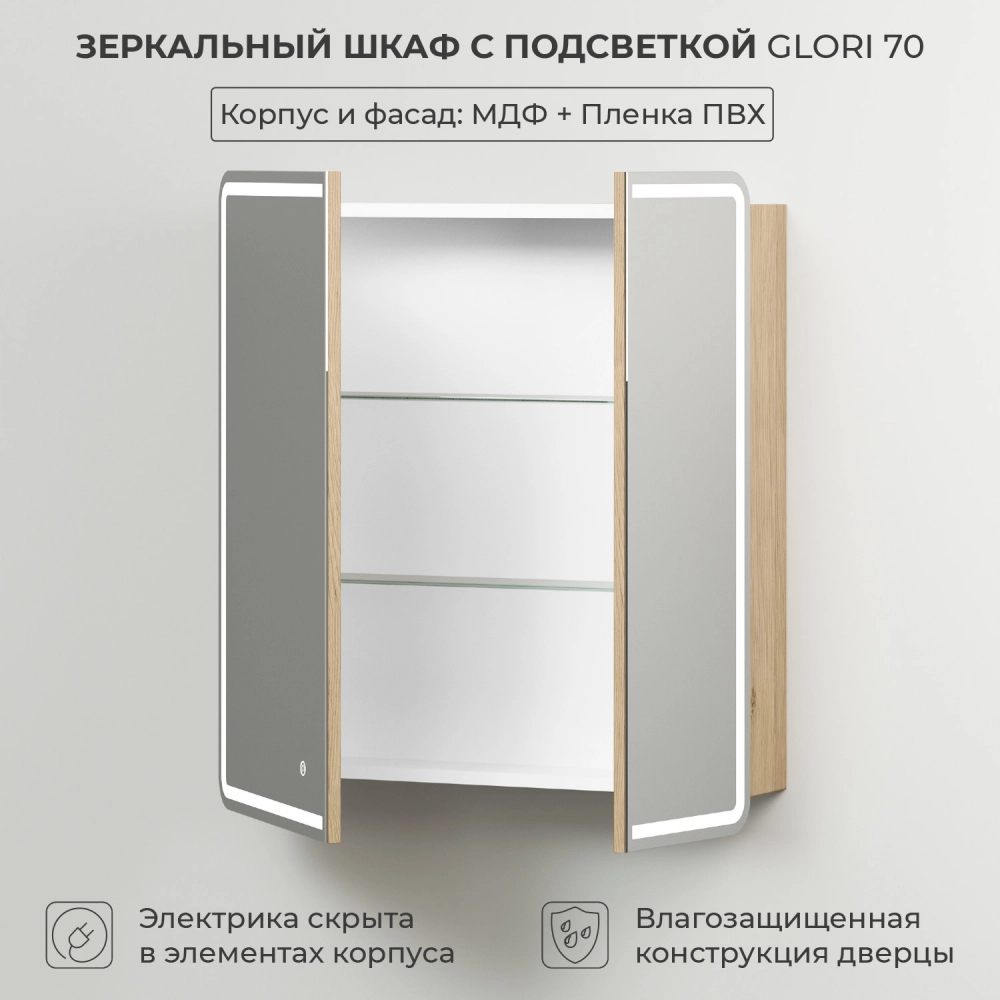 Зеркальный шкаф с подсветкой Итана Glori 70 Дуб Мавелла Голд