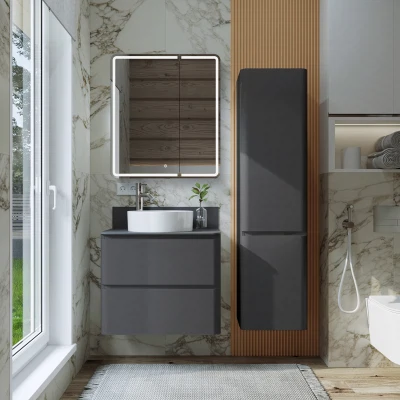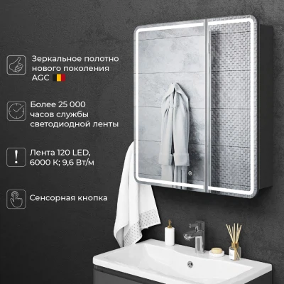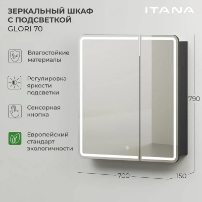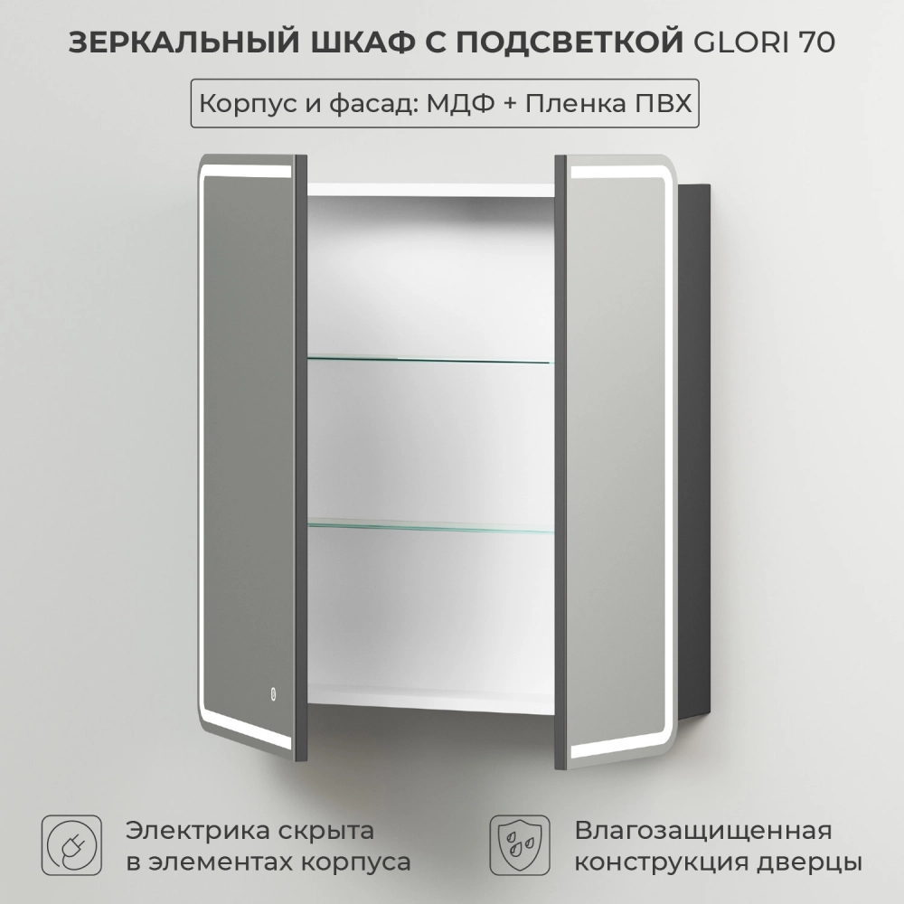 Зеркальный шкаф с подсветкой Итана Glori 70 Графит