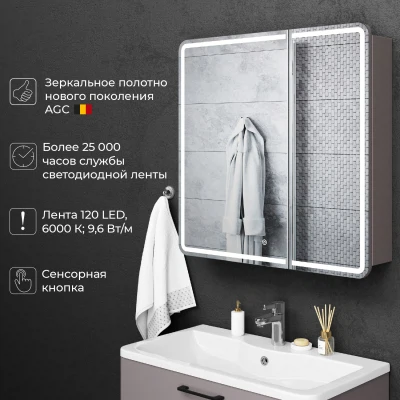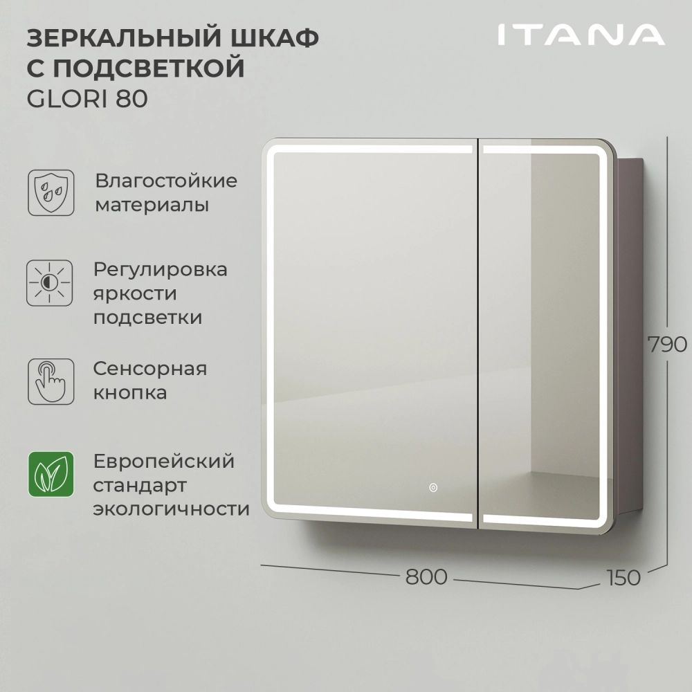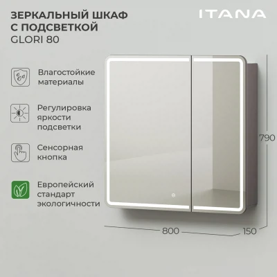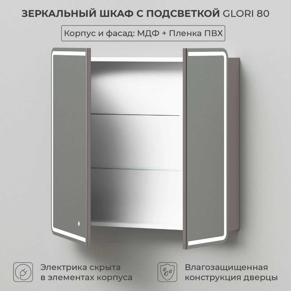 Зеркальный шкаф с подсветкой Итана Glori 80 Амаретти