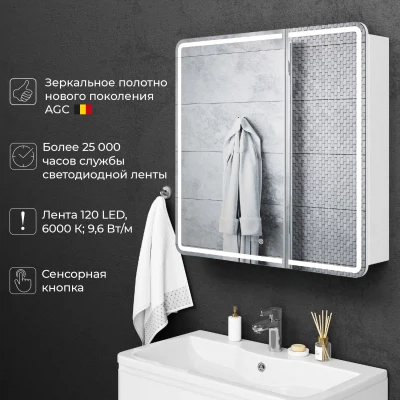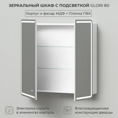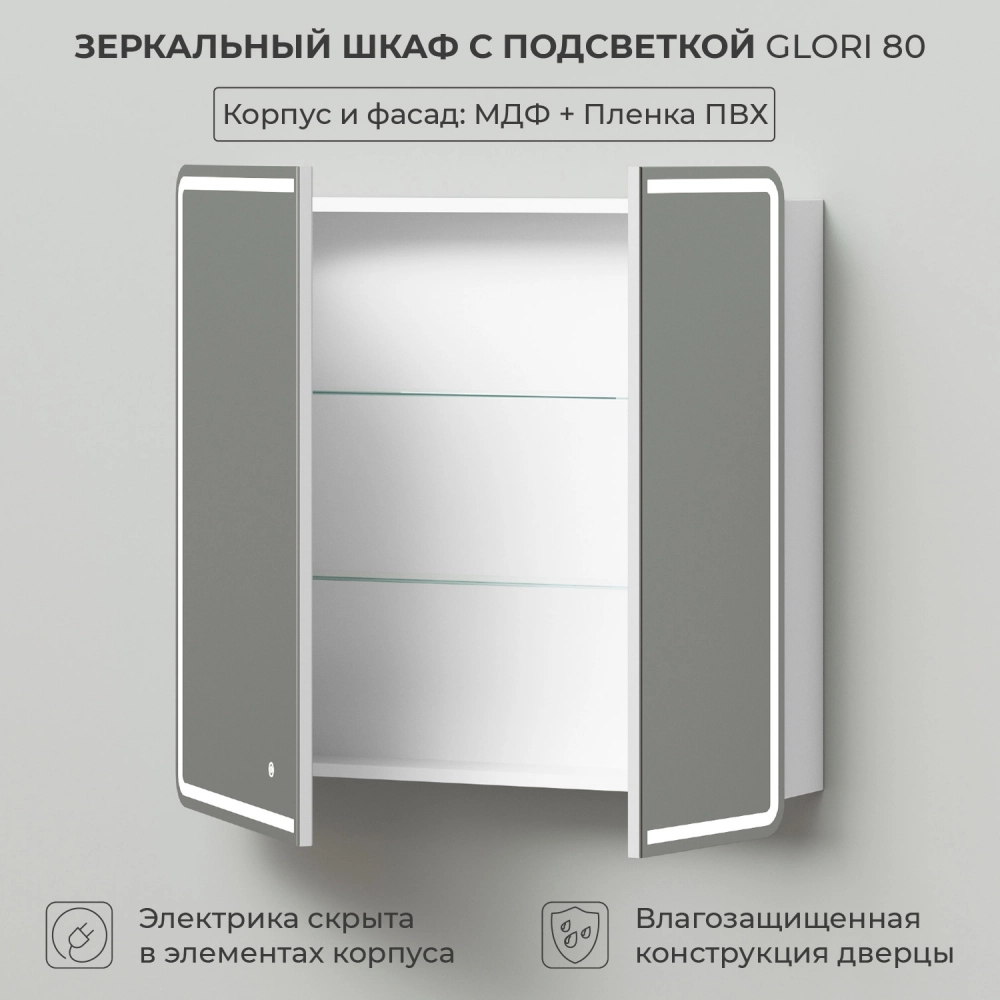 Зеркальный шкаф с подсветкой Итана Glori 80 Белый глянец
