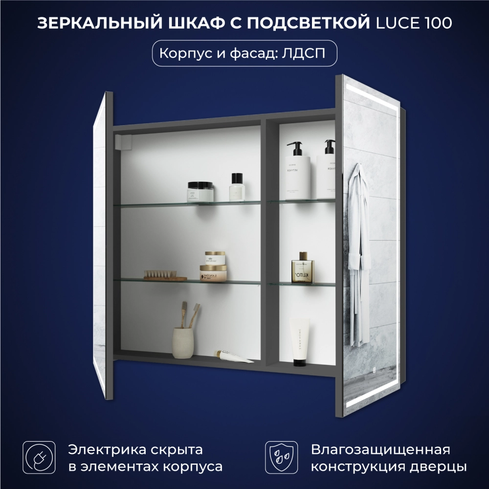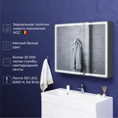 Зеркальный шкаф с подсветкой Итана Luce 100 Серый темный
