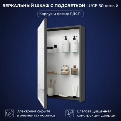 Зеркальный шкаф с подсветкой Итана Luce 50 левое Серый темный