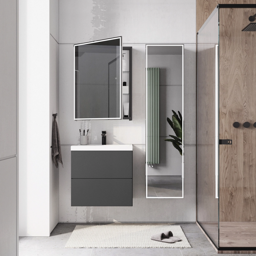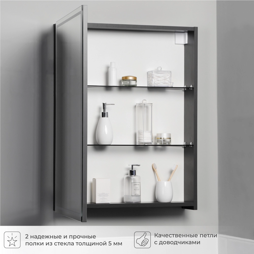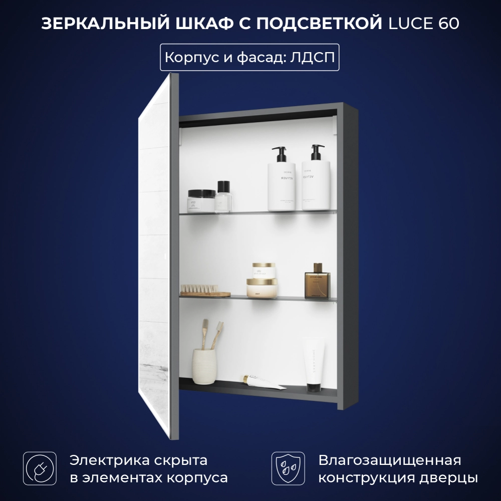 Зеркальный шкаф с подсветкой Итана Luce 60 левое Серый темный
