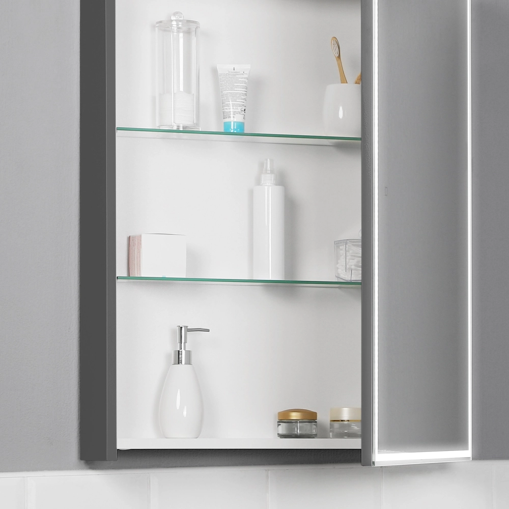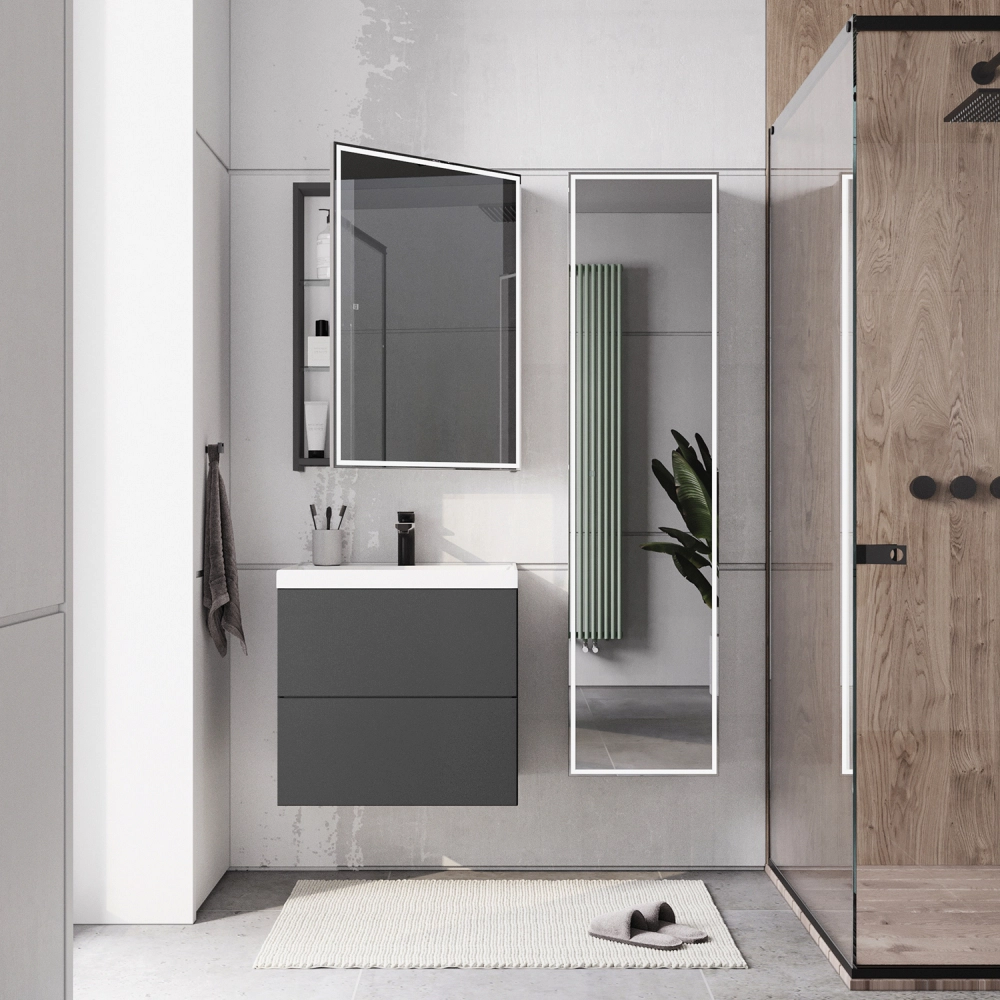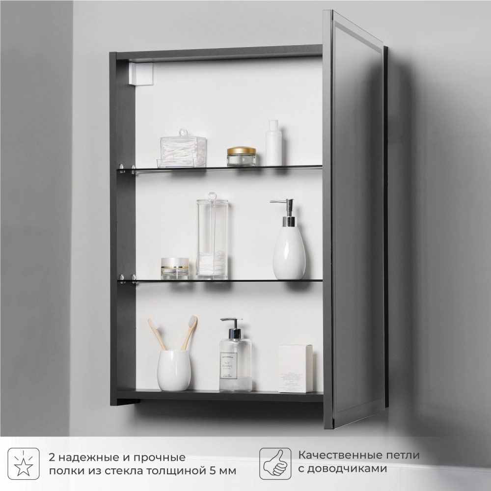 Зеркальный шкаф с подсветкой Итана Luce 60 правое Серый темный