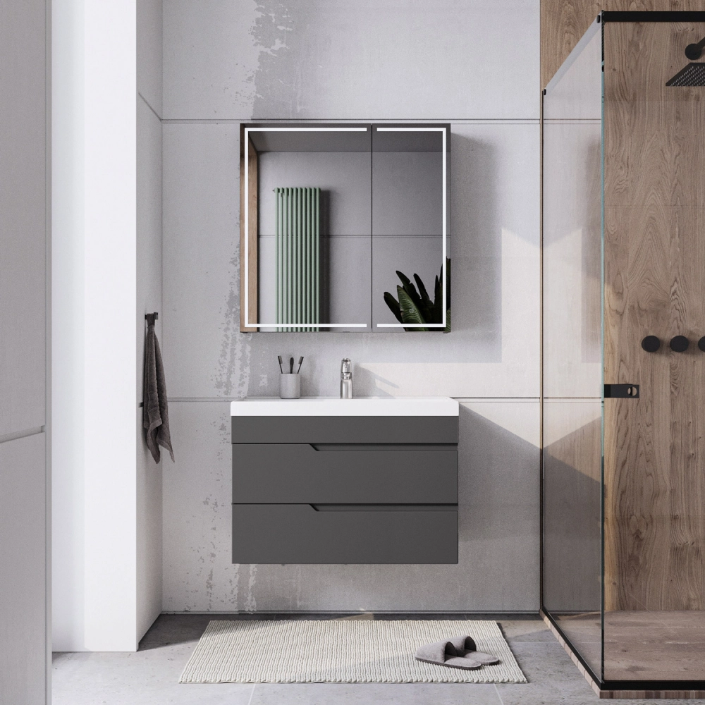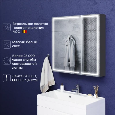 Зеркальный шкаф с подсветкой Итана Luce 80 Серый темный