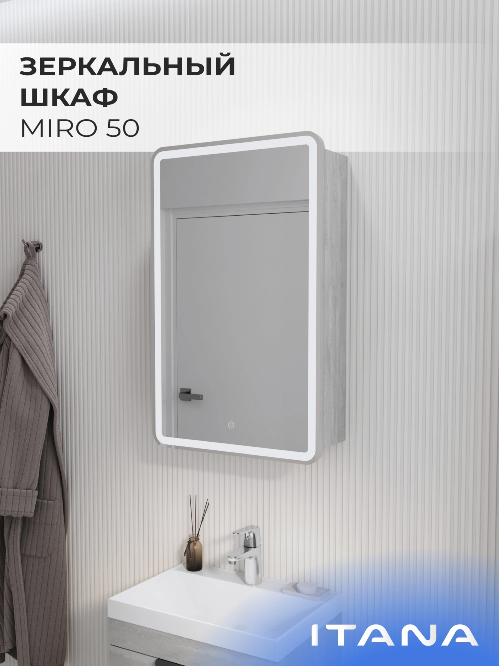 Зеркальный шкаф с подсветкой Итана Miro 50 левое Бетонный Камень