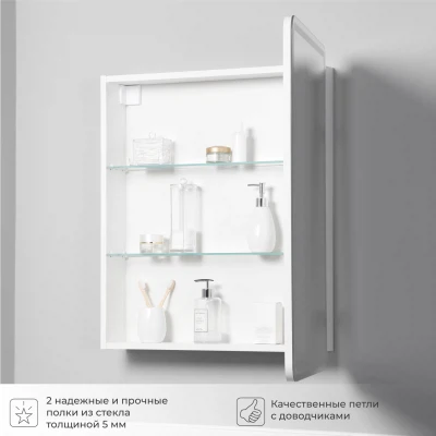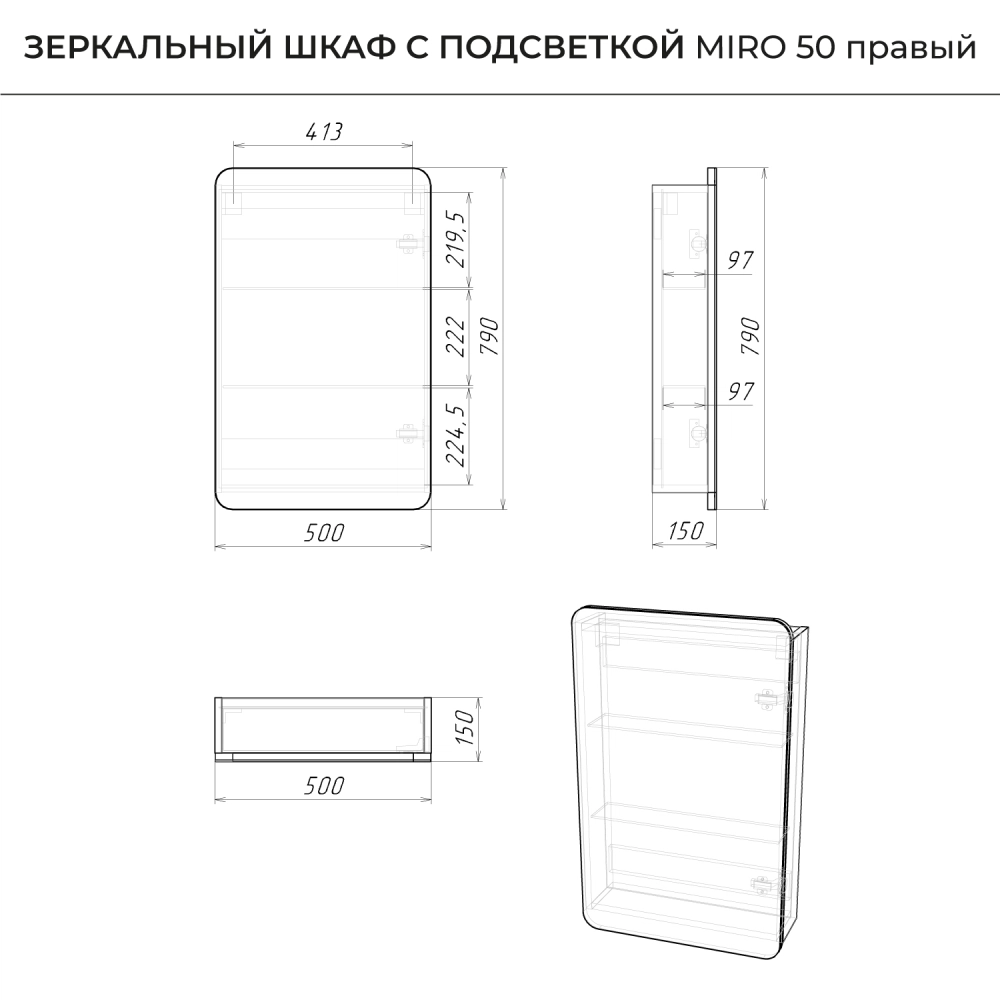 Зеркало-шкаф в ванную с подсветкой Miro 50 - это идеальное решение для вашей ванной комнаты. Этот элегантное и функциональное зеркало в ваннуюс размерами 500х150х790 мм. Зеркало оборудовано современной энергосберегающей подсветкой, которая обеспечивает яркий и равномерный свет, делая ваши утренние процедуры комфортными и удобными. Мягкое освещение идеально подходит для нанесения макияжа, бритья и других гигиенических процедур. Основное преимущество этого зеркального шкафа с подсветкой в ванную - это его продуманная конструкция. Правостороннее открывание обеспечивает удобный доступ ко всем необходимым вещам, а вместительные полки внутри шкафа позволят хранить все необходимые аксессуары и косметические средства в порядке. Зеркальный шкаф Итана Miro 50 изготовлен из высококачественных материалов. Удобная система крепления позволяет быстро и надежно установить шкаф на стену. Для точного выбора шкафа с зеркалом в ванную комнату рекомендуем обратиться к схеме замеров, которая находится на фото в карточке товара, размеры изделия могут отличаться +/-1 см в связи со спецификой производства. Зеркальный шкаф с подсветкой доставляется в предварительно собранном виде, надежно упакован.