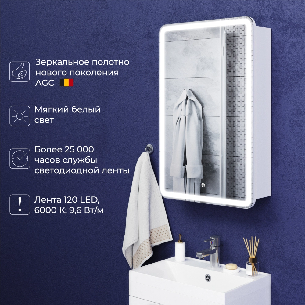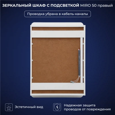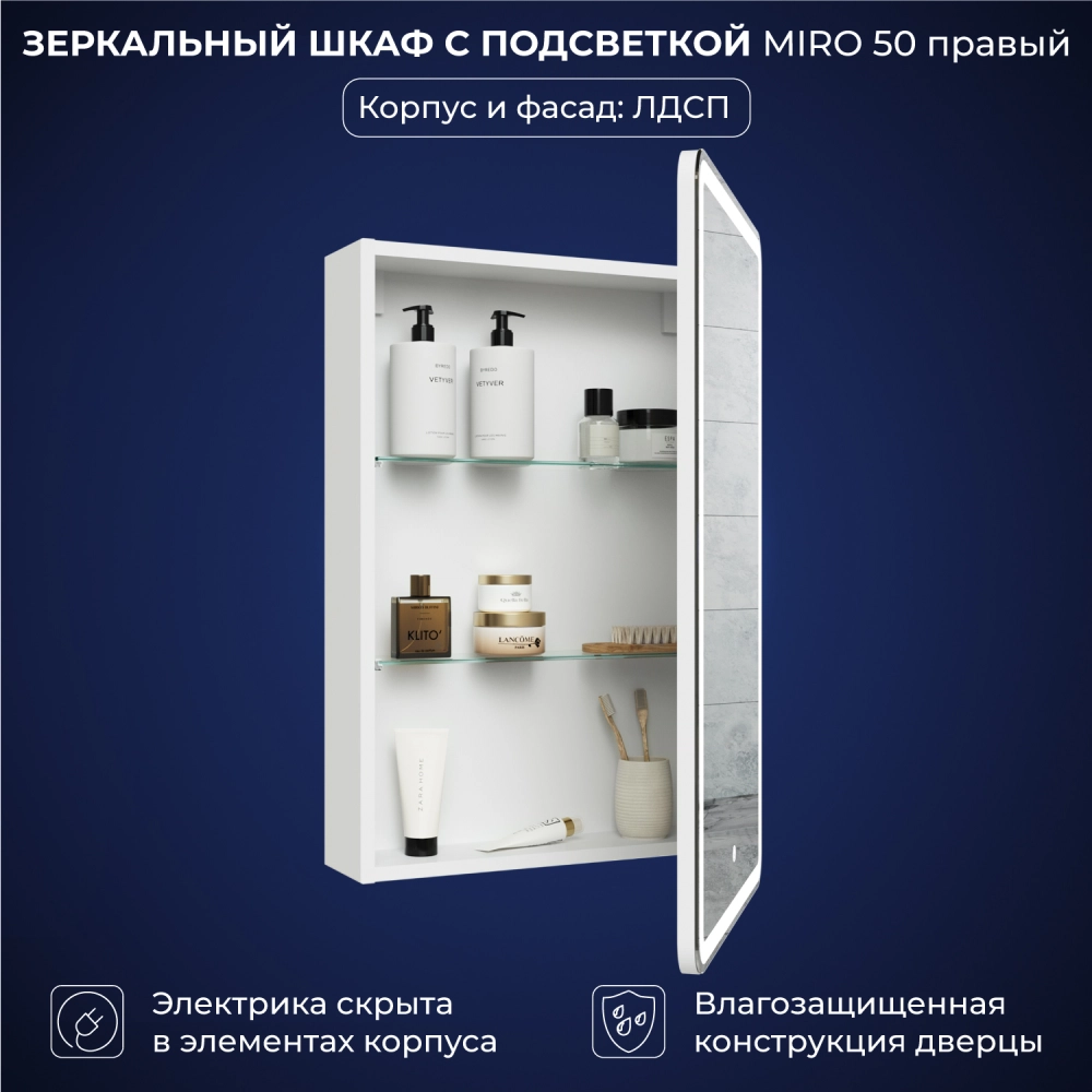 Зеркальный шкаф с подсветкой Итана Miro 50 правое Белый