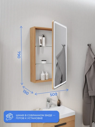 Зеркальный шкаф с подсветкой Итана Miro 50 правое Дуб Корбридж натуральный