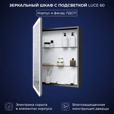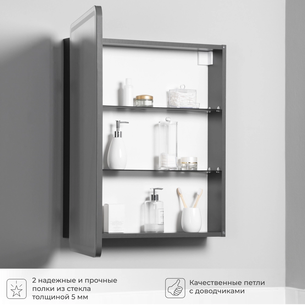 Зеркальный шкаф с подсветкой Итана Miro 60 левое Серый темный