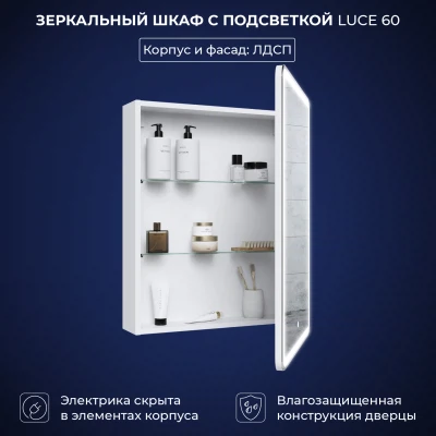 Зеркальный шкаф с подсветкой Итана Miro 60 правое Белый