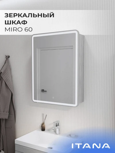 Зеркальный шкаф с подсветкой Итана Miro 60 – это идеальное решение для тех, кто ценит функциональность и стиль в ванной комнате. Этот зеркальный шкаф с подсветкой в ванную позволяет не только удобно хранить все необходимые мелочи, но и дополнительно освещает пространство, создавая уютную атмосферу.<br>Зеркало с подсветкой размером 600х150х790 мм легко впишется в интерьер любой ванной комнаты, делая её визуально более просторной и светлой. Шкаф оснащён правосторонним открытием дверцы, что делает его особенно удобным для размещения рядом с раковиной и позволяет максимально эффективно использовать пространство. Встроенная подсветка не только обеспечивает дополнительное освещение для выполнения утренних и вечерних ритуалов, но также выгодно подчёркивает красоту интерьера. Этот зеркальный шкаф с подсветкой идеально подходит для тех, кто хочет добавить своей ванной комнате больше функционала и эстетики. Зеркало в ванную с подсветкой Итана Miro 60 изготовлено из высококачественных материалов. Кроме того, его легко чистить, что особенно важно для ванной комнаты. Простота монтажа позволяет быстро и без лишних усилий установить шкаф в любое удобное место. Если вы ищете стильное и практичное решение для ванной комнаты, зеркальный шкаф с подсветкой в ванную Итана Miro 60 станет отличным выбором. Выбирая зеркальный шкаф с подсветкой Итана Miro 60, вы получаете надежное и качественное изделие, которое прослужит вам долгие годы.