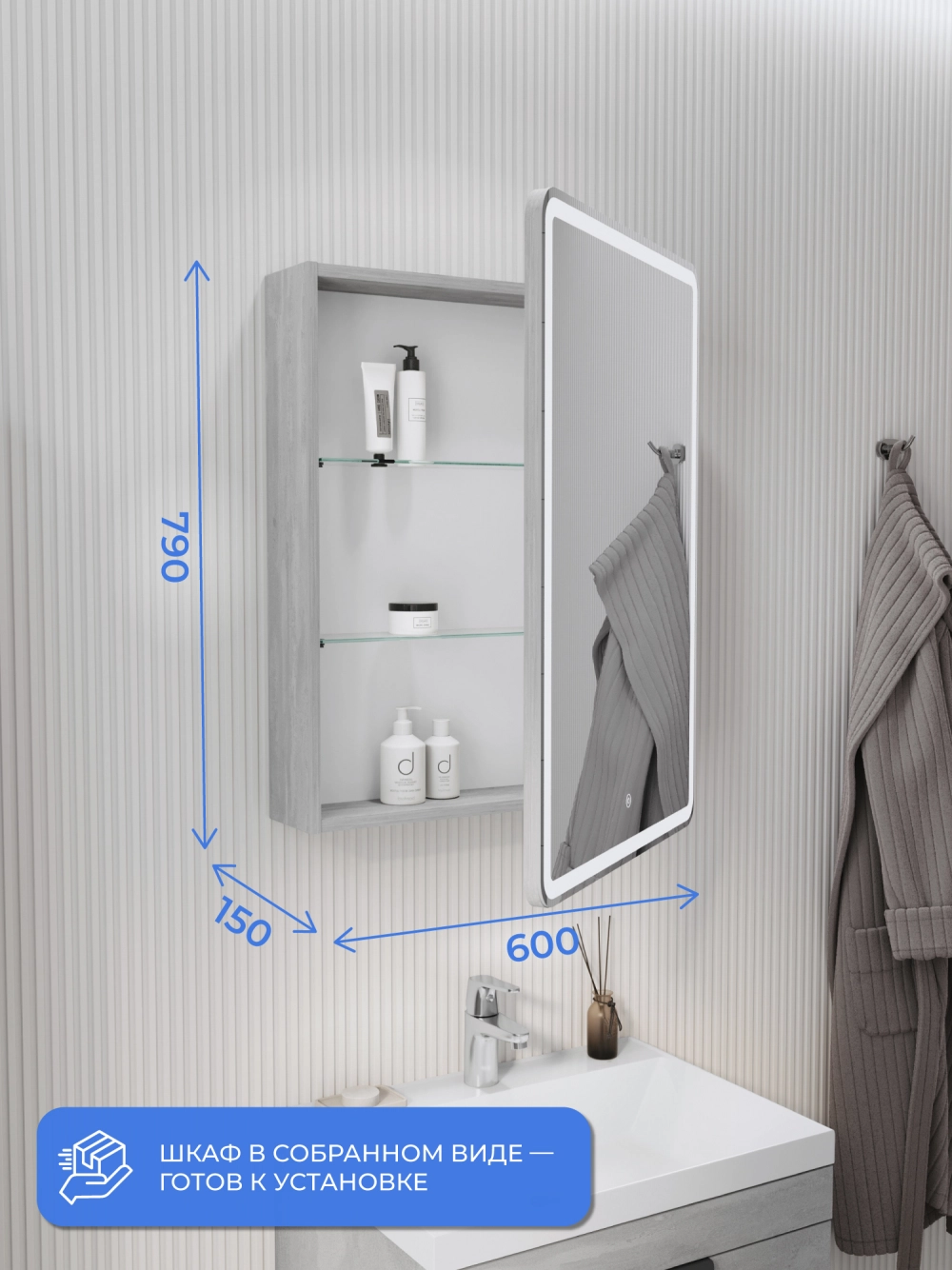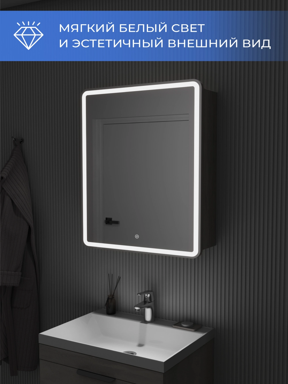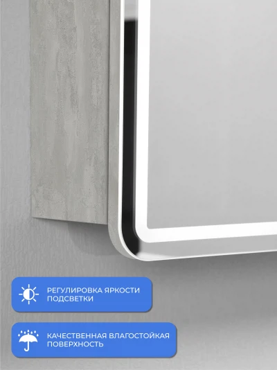 Зеркальный шкаф с подсветкой Итана Miro 60 правое Бетонный Камень