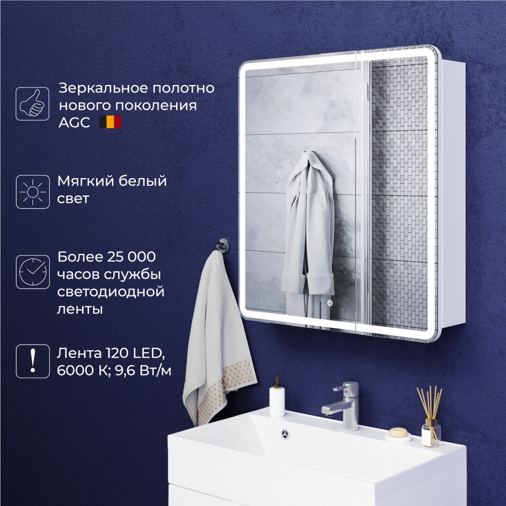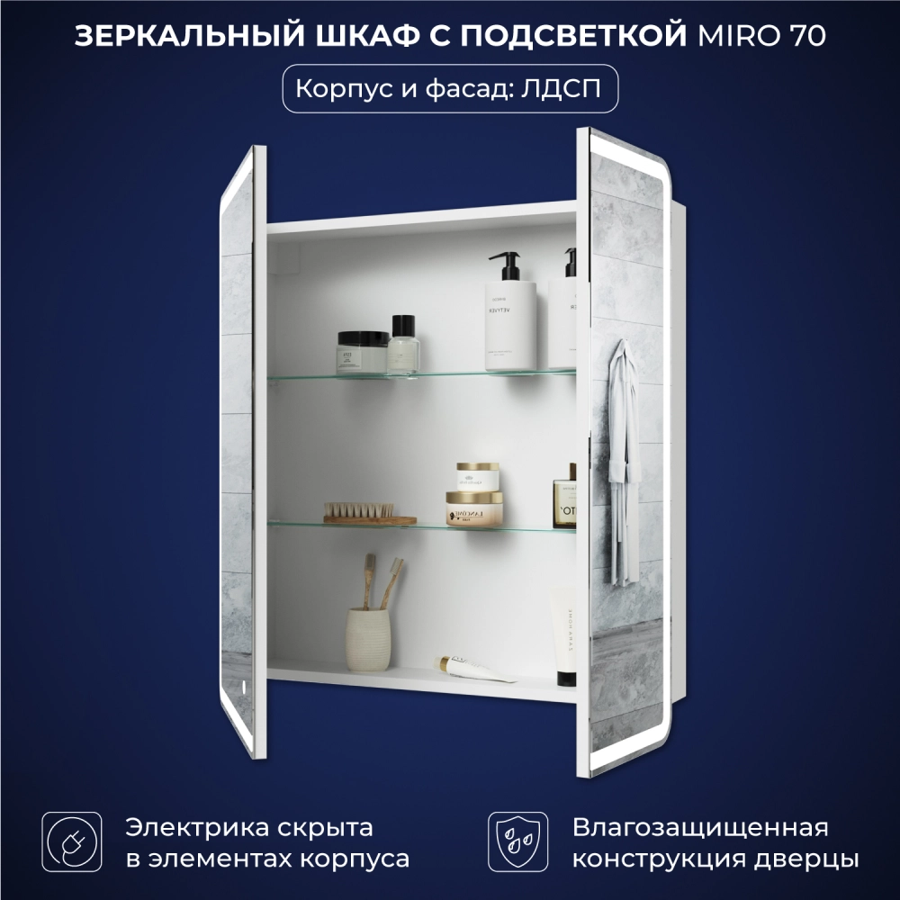 Зеркальный шкаф с подсветкой Итана Miro 70 Белый
