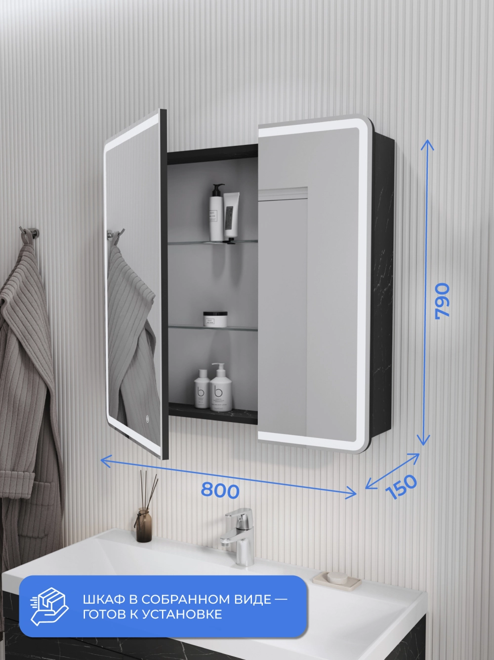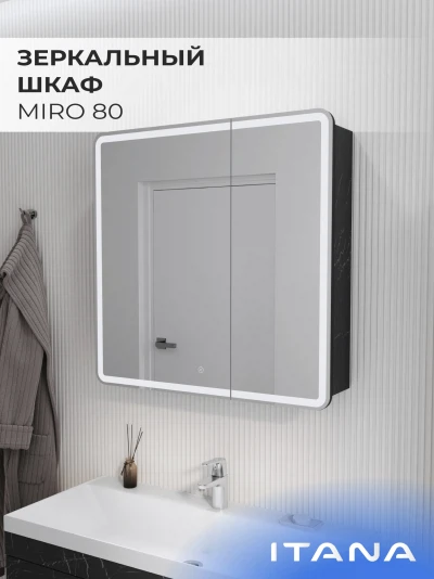 Зеркальный шкаф с подсветкой Итана Miro 80 - это идеальное решение для вашей ванной комнаты. Этот элегантный и функциональный шкаф, с размерами 800х150х790 мм, представляет собой зеркало с подсветкой, которое не только украсит интерьер, но и добавит практичности вашему утреннему и вечернему уходу за собой.<br>Зеркало в ванную комнату оборудовано современной энергосберегающей подсветкой, которая обеспечивает яркий и равномерный свет, делая ваши утренние процедуры комфортными и удобными. Мягкое освещение идеально подходит для нанесения макияжа, бритья и других гигиенических процедур. Основное преимущество этого зеркального шкафа с подсветкой в ванную - это его продуманная конструкция. Вместительные полки внутри шкафа позволят хранить все необходимые аксессуары и косметические средства в порядке. Зеркальный шкаф Итана Miro 80 изготовлен из высококачественных материалов. Удобная система крепления позволяет быстро и надежно установить шкаф на стену. Если вы ищете стильное и функциональное зеркало с подсветкой для своей ванной комнаты, зеркальный шкаф с подсветкой Итана Miro 80 - это то, что вам нужно. Он сочетает в себе современные технологии, высокое качество и утонченный дизайн, делая ваше утреннее и вечернее времяпрепровождение еще приятнее. Преобразите свою ванную комнату с этим великолепным зеркальным шкафом.