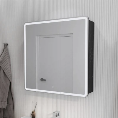 Зеркальный шкаф с подсветкой Итана Miro 80 Камень Пьетра Гриджиа черный