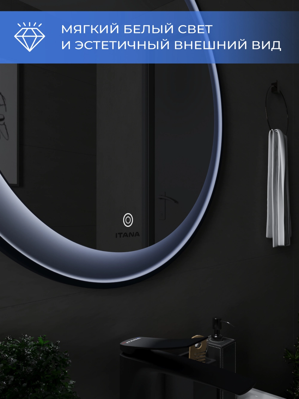 Зеркало с подсветкой в ванную Итана Kate 50, диаметр которого составляет 500 мм, – это идеальное решение для современной ванной комнаты. Круглая форма зеркала и стильный дизайн подарят интерьеру визуальную легкость и гармонию, создавая ощущение простора. Удобное настенное крепление легко впишется в любое пространство, а высокоэффективная подсветка обеспечит яркость и комфорт при утренних сборках или вечерних ритуалах. Это зеркало для ванной с подсветкой не только эстетично, но и функционально. Встроенная светодиодная подсветка равномерно освещает лицо, что делает её незаменимым помощником в повседневном уходе за собой. Технология подсветки позволяет максимально точно передать цвета, что особенно важно для нанесения макияжа или бритья. Светодиоды, расположенные по периметру зеркала, имеют длительный срок службы, обеспечивая экономичное потребление электроэнергии. Зеркало настенное в ванную Итана Kate 50 изготовлено из высококачественных материалов, что гарантирует долговечность и безупречный внешний вид на протяжении многих лет. Его легко монтировать и поддерживать в чистоте – достаточно протереть поверхность мягкой тканью, чтобы вернуть блеск и чистоту. Зеркало в ванную комнату с подсветкой Итана Kate 50 украсит любой интерьер: от классического до современного. Его утонченный и лаконичный вид позволяет сочетать зеркало с любым стилем мебели и сантехники. Оно станет центральным элементом вашей ванной комнаты, делая помещение светлее и уютнее. Не упустите возможность преобразить вашу ванную комнату с помощью этого великолепного зеркала с подсветкой. Итана Kate 50 воплощает в себе практичность, функциональность и стиль, предлагая вам комфорт и эстетическое удовольствие каждый день.