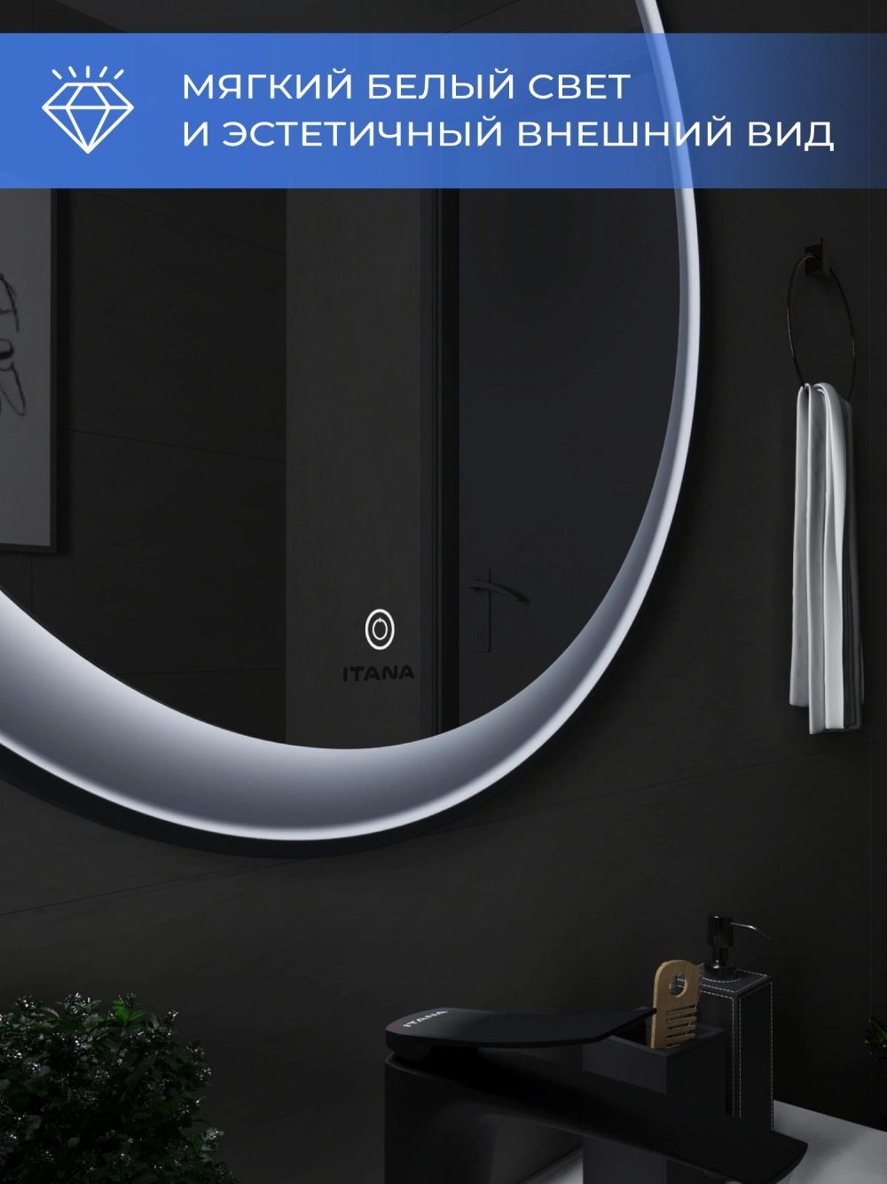 Зеркало с подсветкой в ванную Итана Kate 60, диаметр которого составляет 600 мм, – это идеальное решение для современной ванной комнаты. Круглая форма зеркала и стильный дизайн подарят интерьеру визуальную легкость и гармонию, создавая ощущение простора. Удобное настенное крепление легко впишется в любое пространство, а высокоэффективная подсветка обеспечит яркость и комфорт при утренних сборках или вечерних ритуалах. Это зеркало для ванной с подсветкой не только эстетично, но и функционально. Встроенная светодиодная подсветка равномерно освещает лицо, что делает её незаменимым помощником в повседневном уходе за собой. Технология подсветки позволяет максимально точно передать цвета, что особенно важно для нанесения макияжа или бритья. Светодиоды, расположенные по периметру зеркала, имеют длительный срок службы, обеспечивая экономичное потребление электроэнергии. Зеркало настенное в ванную Итана Kate 60 изготовлено из высококачественных материалов, что гарантирует долговечность и безупречный внешний вид на протяжении многих лет. Его легко монтировать и поддерживать в чистоте – достаточно протереть поверхность мягкой тканью, чтобы вернуть блеск и чистоту. Зеркало в ванную комнату с подсветкой Итана Kate 60 украсит любой интерьер: от классического до современного. Его утонченный и лаконичный вид позволяет сочетать зеркало с любым стилем мебели и сантехники. Оно станет центральным элементом вашей ванной комнаты, делая помещение светлее и уютнее. Не упустите возможность преобразить вашу ванную комнату с помощью этого великолепного зеркала с подсветкой. Итана Kate 60 воплощает в себе практичность, функциональность и стиль, предлагая вам комфорт и эстетическое удовольствие каждый день.