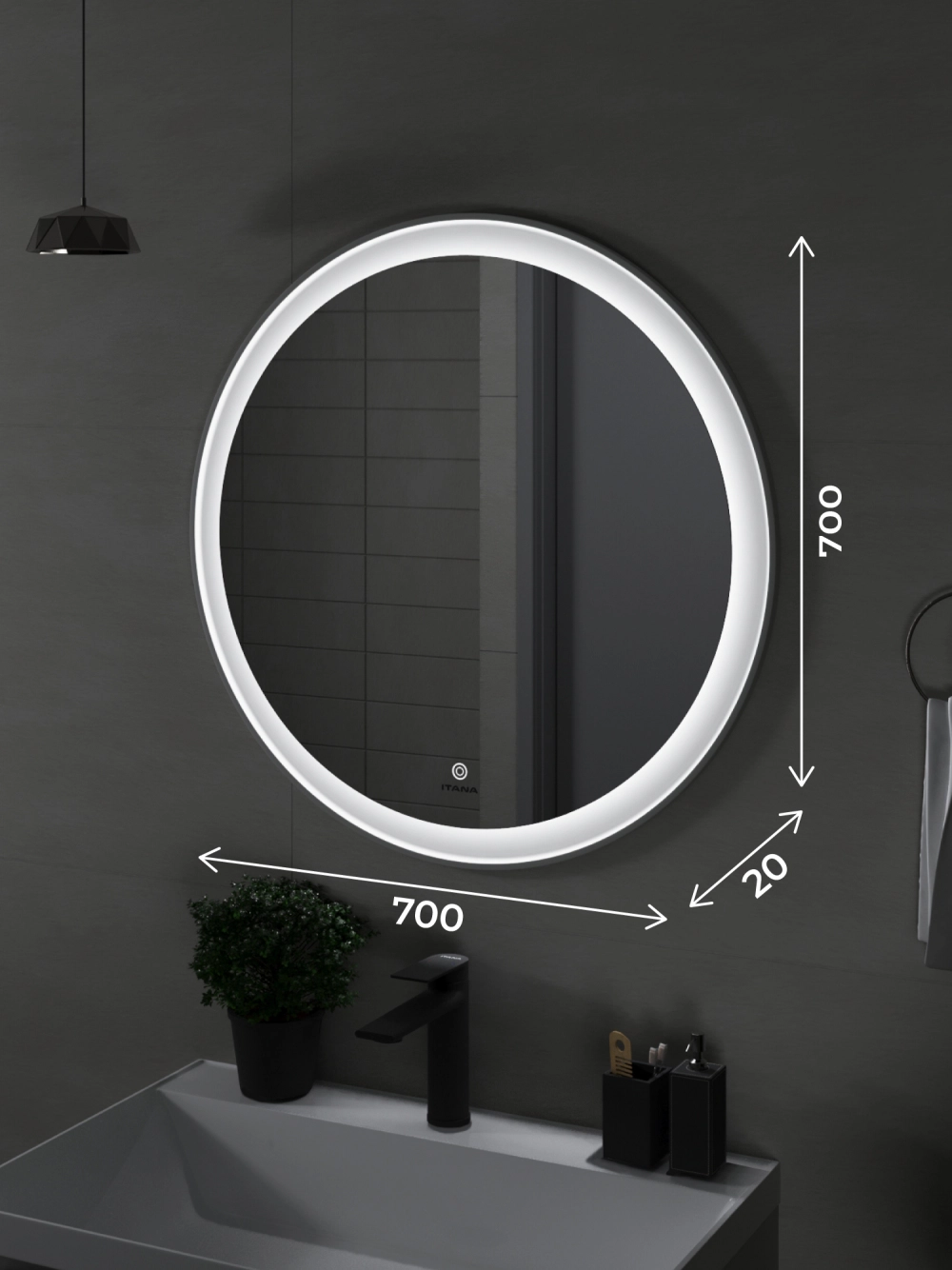 Зеркало с подсветкой в ванную Итана Kate 70, диаметр которого составляет 700 мм, – это идеальное решение для современной ванной комнаты. Круглая форма зеркала и стильный дизайн подарят интерьеру визуальную легкость и гармонию, создавая ощущение простора. Удобное настенное крепление легко впишется в любое пространство, а высокоэффективная подсветка обеспечит яркость и комфорт при утренних сборках или вечерних ритуалах. Это зеркало для ванной с подсветкой не только эстетично, но и функционально. Встроенная светодиодная подсветка равномерно освещает лицо, что делает её незаменимым помощником в повседневном уходе за собой. Технология подсветки позволяет максимально точно передать цвета, что особенно важно для нанесения макияжа или бритья. Светодиоды, расположенные по периметру зеркала, имеют длительный срок службы, обеспечивая экономичное потребление электроэнергии. Зеркало настенное в ванную Итана Kate 70 изготовлено из высококачественных материалов, что гарантирует долговечность и безупречный внешний вид на протяжении многих лет. Его легко монтировать и поддерживать в чистоте – достаточно протереть поверхность мягкой тканью, чтобы вернуть блеск и чистоту. Зеркало в ванную комнату с подсветкой Итана Kate 70 украсит любой интерьер: от классического до современного. Его утонченный и лаконичный вид позволяет сочетать зеркало с любым стилем мебели и сантехники. Оно станет центральным элементом вашей ванной комнаты, делая помещение светлее и уютнее. Не упустите возможность преобразить вашу ванную комнату с помощью этого великолепного зеркала с подсветкой. Итана Kate 70 воплощает в себе практичность, функциональность и стиль, предлагая вам комфорт и эстетическое удовольствие каждый день.