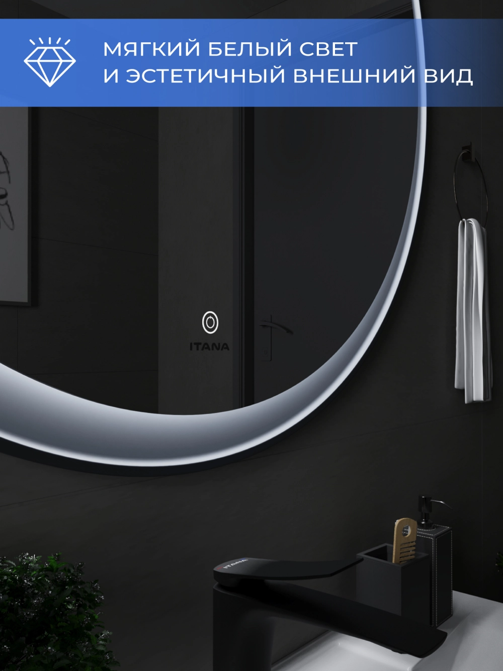 Зеркало с подсветкой в ванную Итана Kate 80, диаметр которого составляет 800 мм, – это идеальное решение для современной ванной комнаты. Круглая форма зеркала и стильный дизайн подарят интерьеру визуальную легкость и гармонию, создавая ощущение простора. Удобное настенное крепление легко впишется в любое пространство, а высокоэффективная подсветка обеспечит яркость и комфорт при утренних сборках или вечерних ритуалах. Это зеркало для ванной с подсветкой не только эстетично, но и функционально. Встроенная светодиодная подсветка равномерно освещает лицо, что делает её незаменимым помощником в повседневном уходе за собой. Технология подсветки позволяет максимально точно передать цвета, что особенно важно для нанесения макияжа или бритья. Светодиоды, расположенные по периметру зеркала, имеют длительный срок службы, обеспечивая экономичное потребление электроэнергии. Зеркало настенное в ванную Итана Kate 80 изготовлено из высококачественных материалов, что гарантирует долговечность и безупречный внешний вид на протяжении многих лет. Его легко монтировать и поддерживать в чистоте – достаточно протереть поверхность мягкой тканью, чтобы вернуть блеск и чистоту. Зеркало в ванную комнату с подсветкой Итана Kate 80 украсит любой интерьер: от классического до современного. Его утонченный и лаконичный вид позволяет сочетать зеркало с любым стилем мебели и сантехники. Оно станет центральным элементом вашей ванной комнаты, делая помещение светлее и уютнее. Не упустите возможность преобразить вашу ванную комнату с помощью этого великолепного зеркала с подсветкой. Итана Kate 80 воплощает в себе практичность, функциональность и стиль, предлагая вам комфорт и эстетическое удовольствие каждый день.
