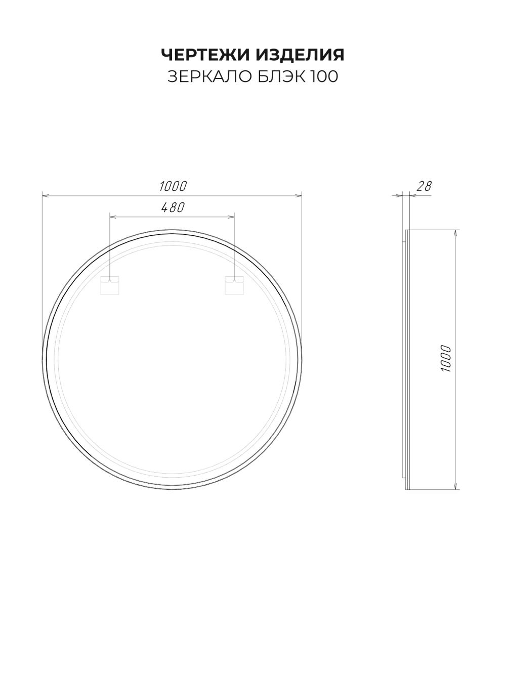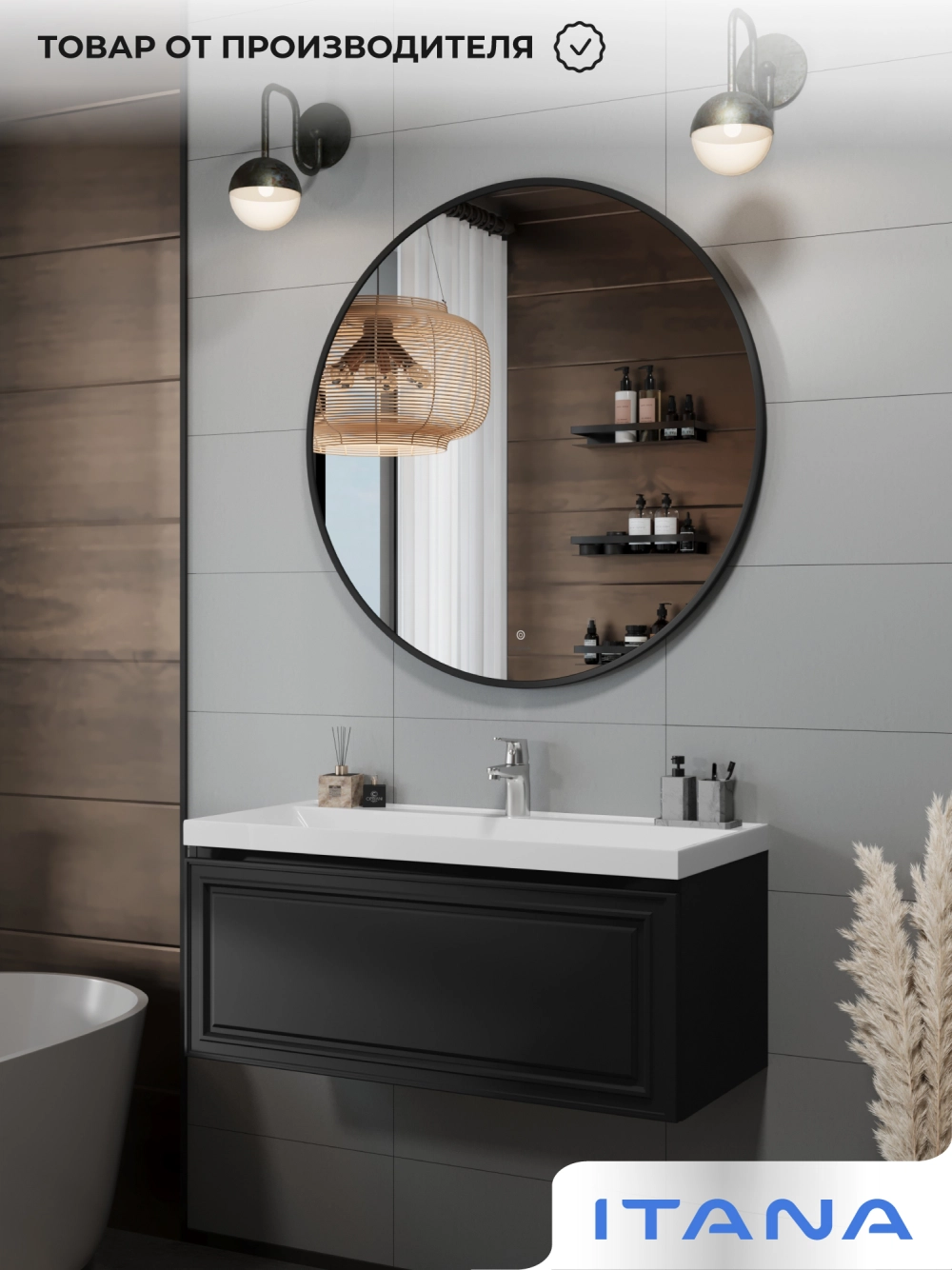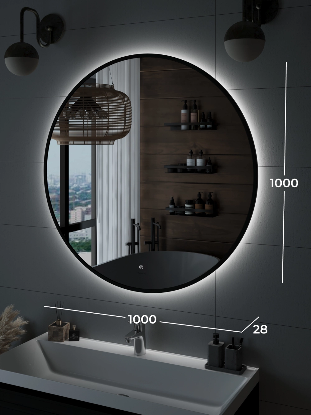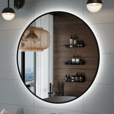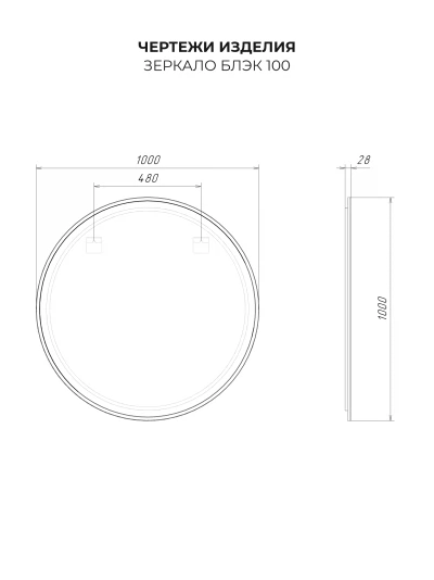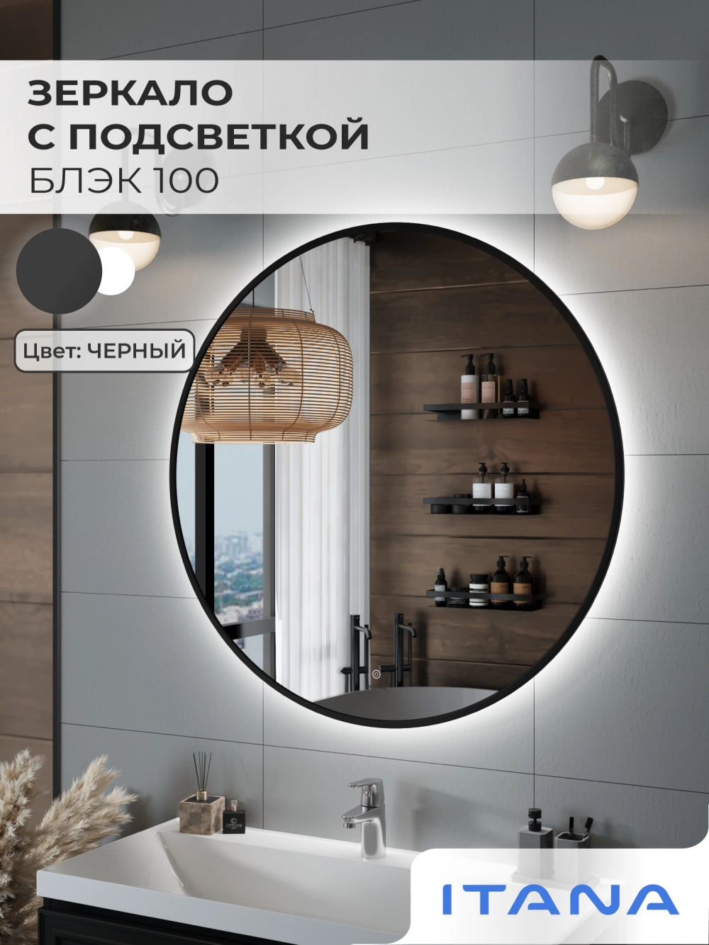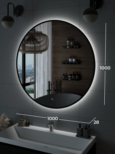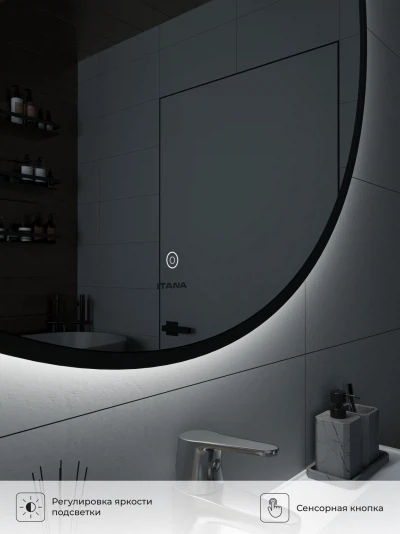 Зеркало с подсветкой ИТАНА Блэк 100, круглое, Черный