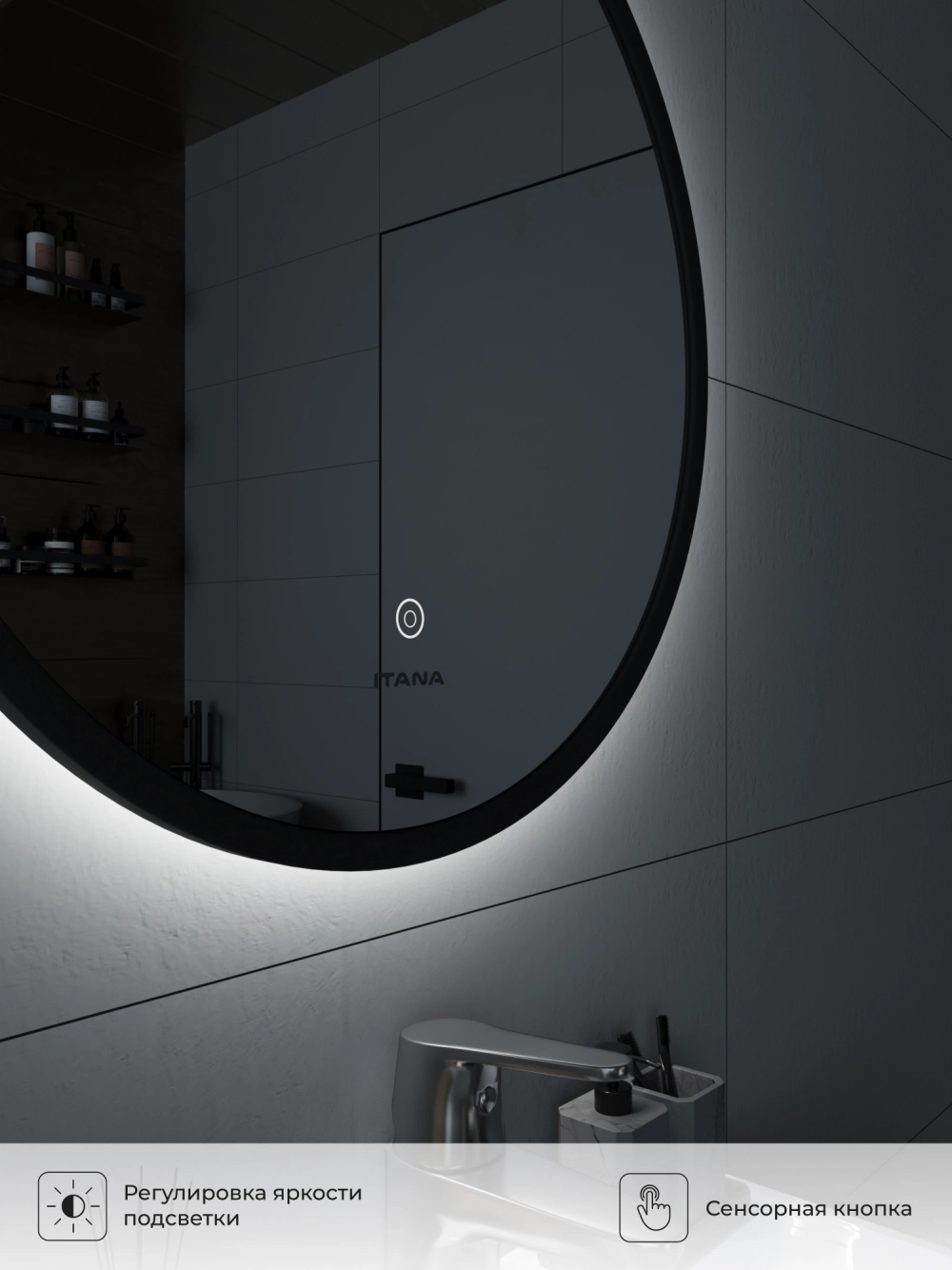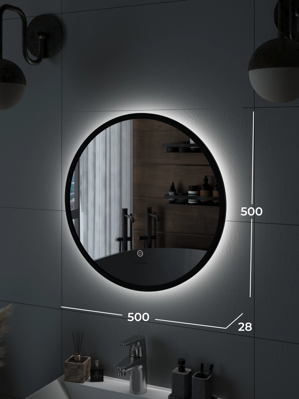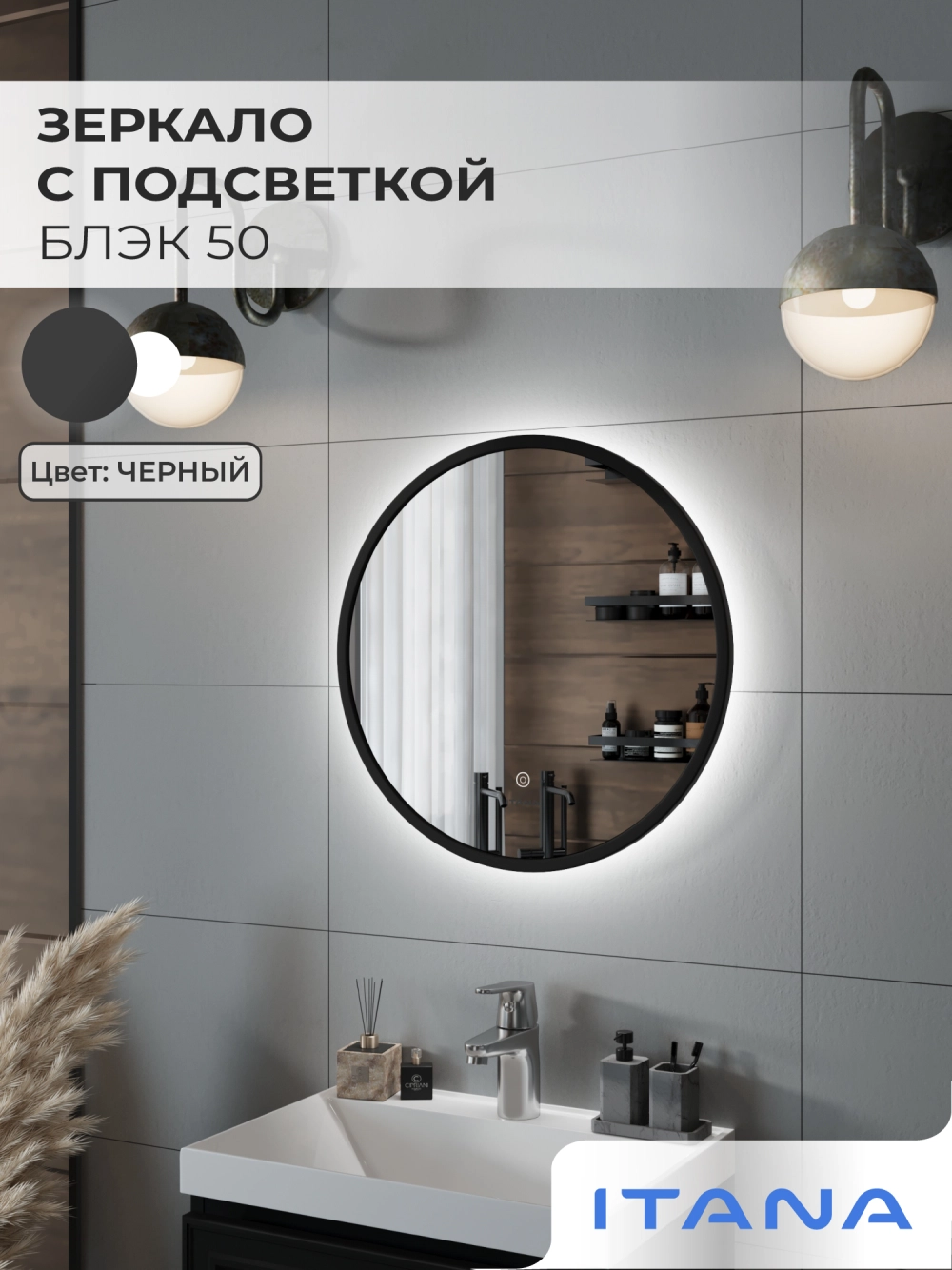 Зеркало с подсветкой ИТАНА Блэк 50, круглое, Черный