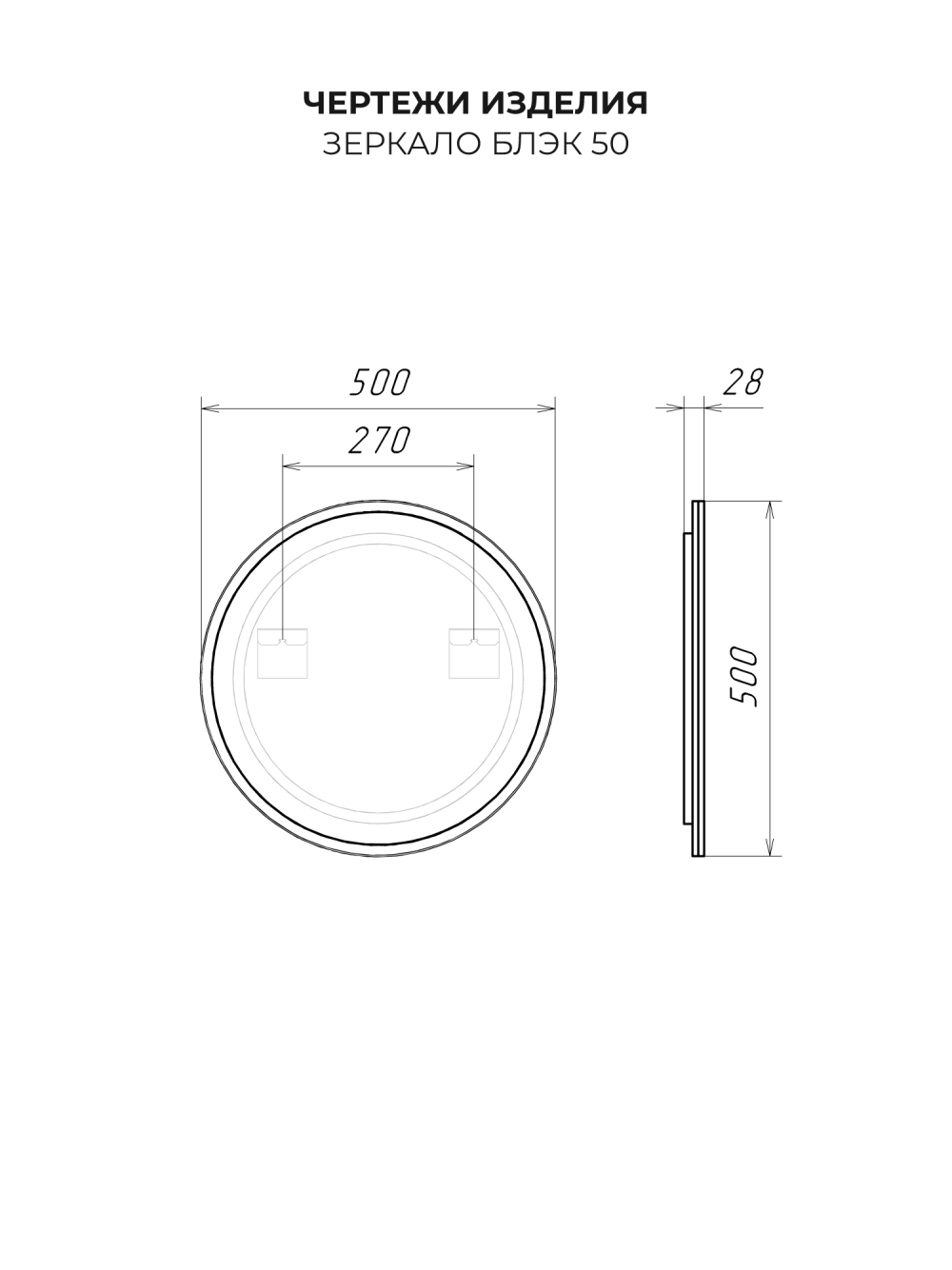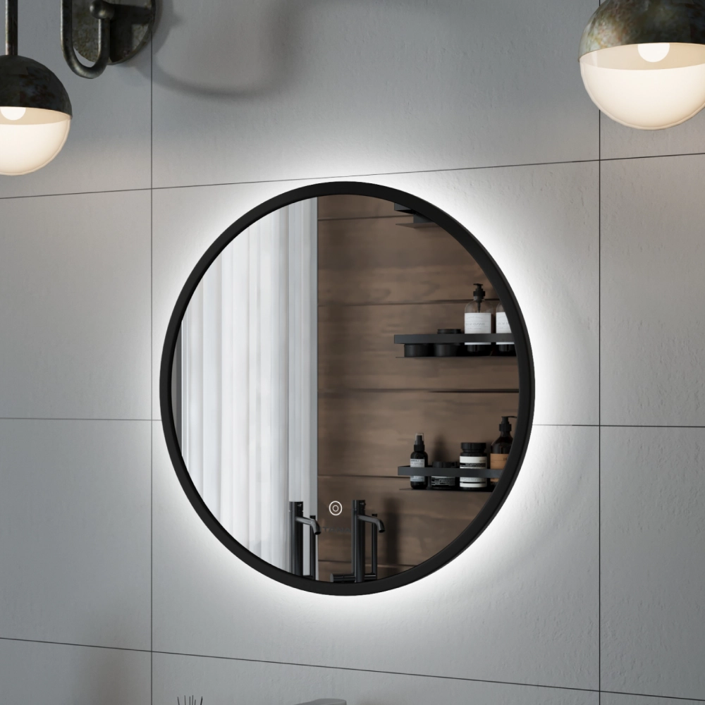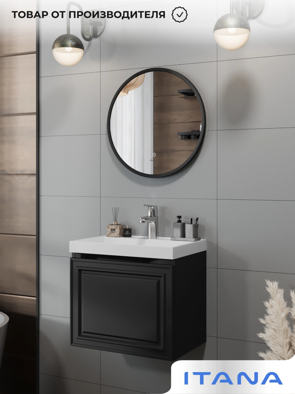 Зеркало с подсветкой ИТАНА Блэк 50, круглое, Черный