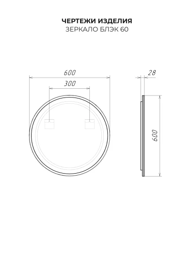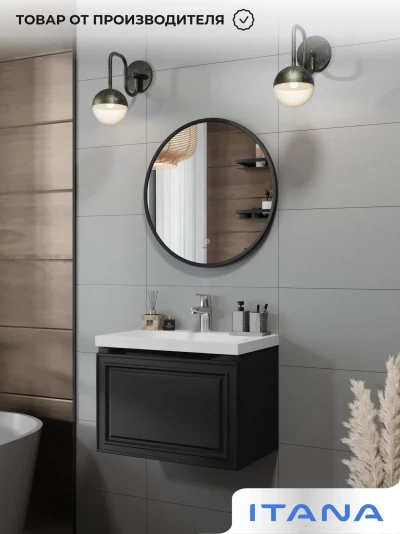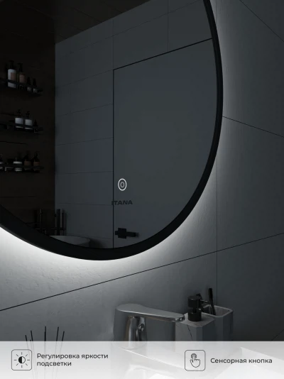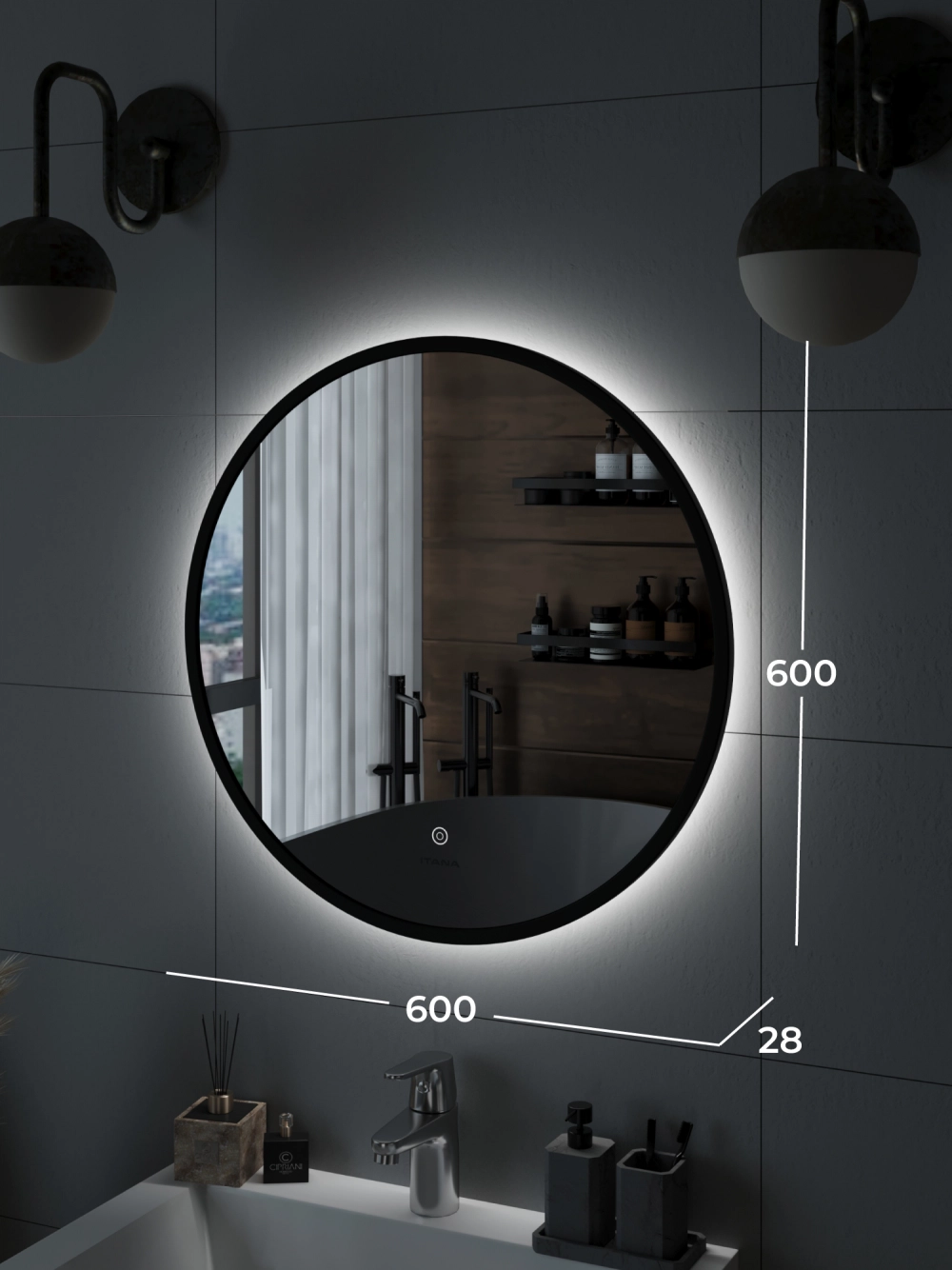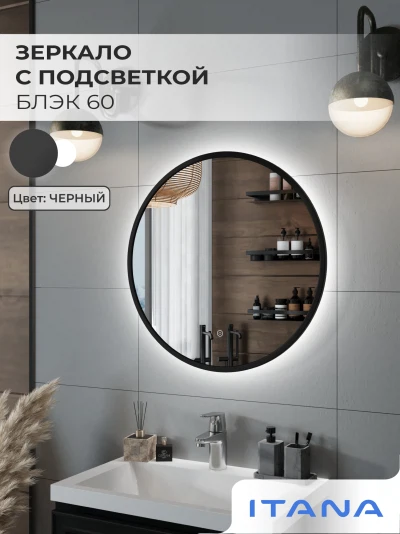 Зеркало с подсветкой ИТАНА Блэк 60, круглое, Черный