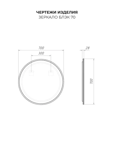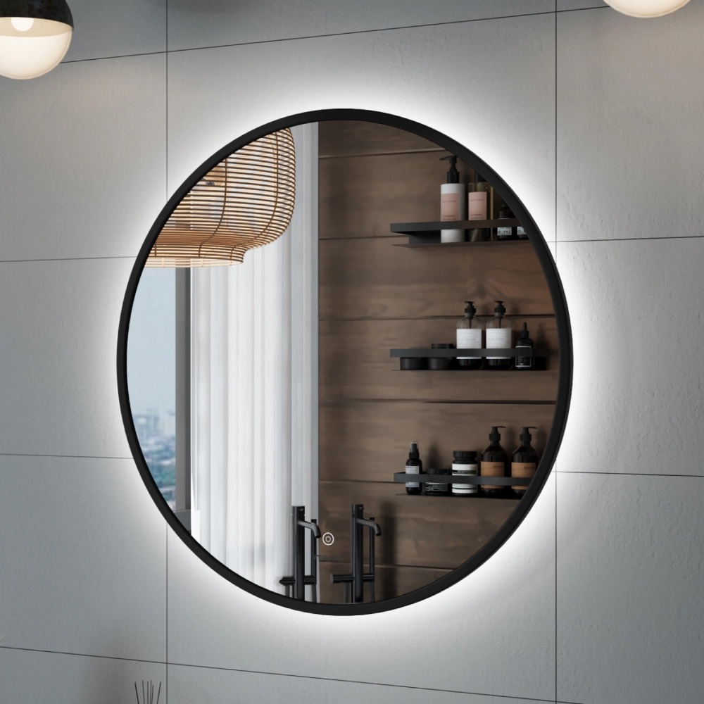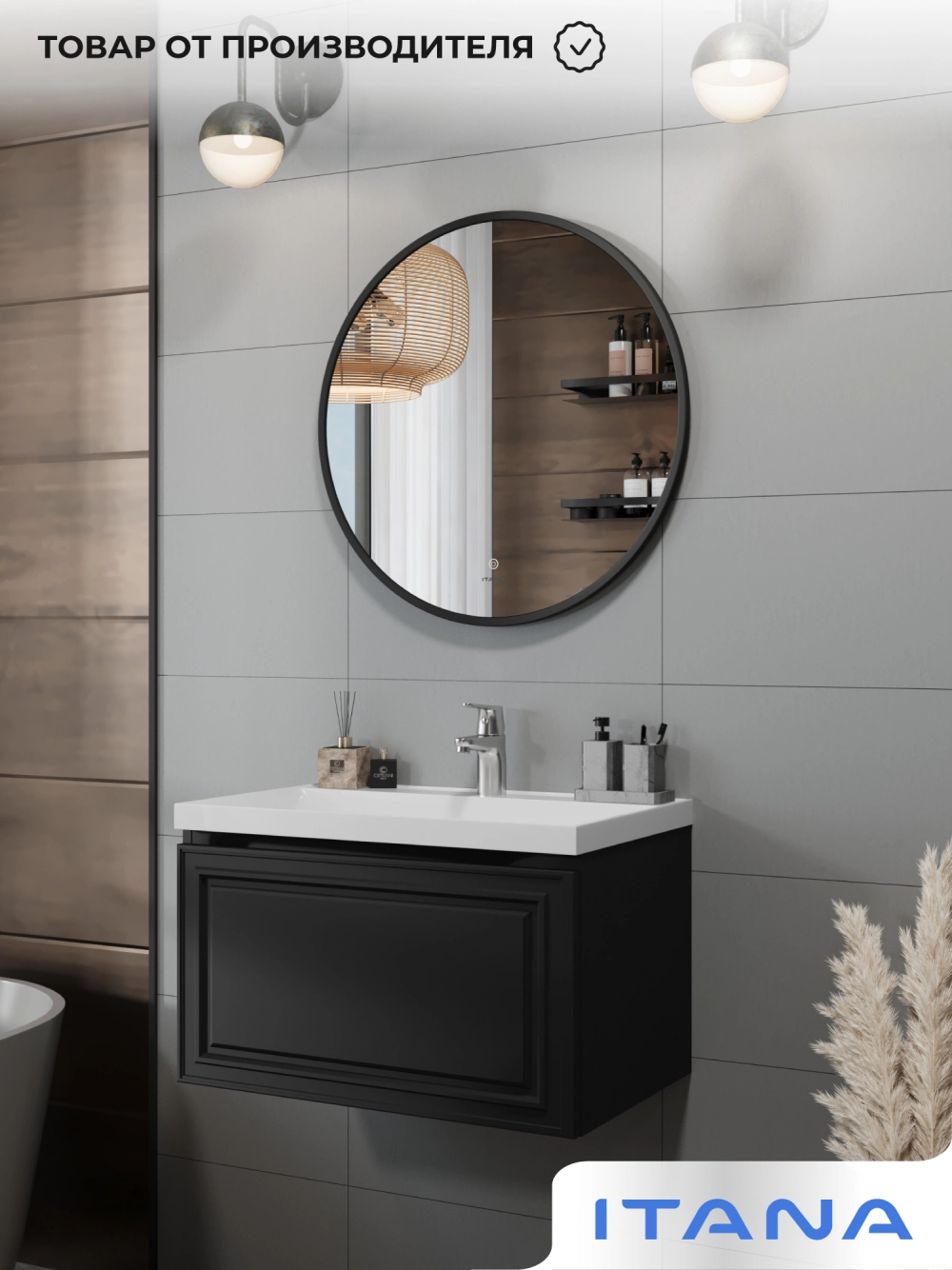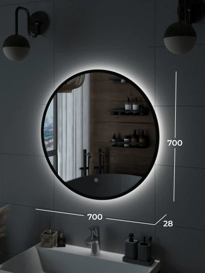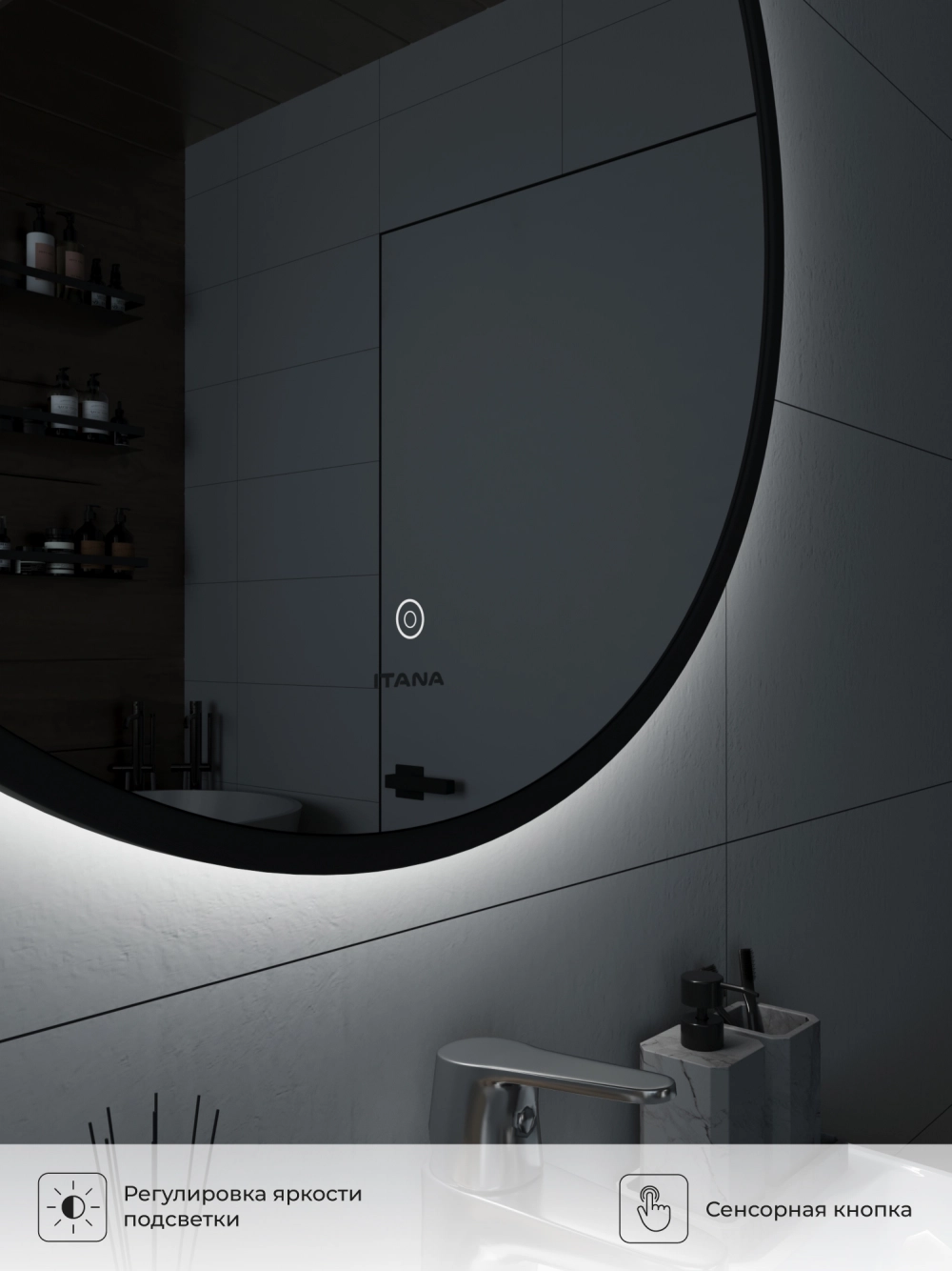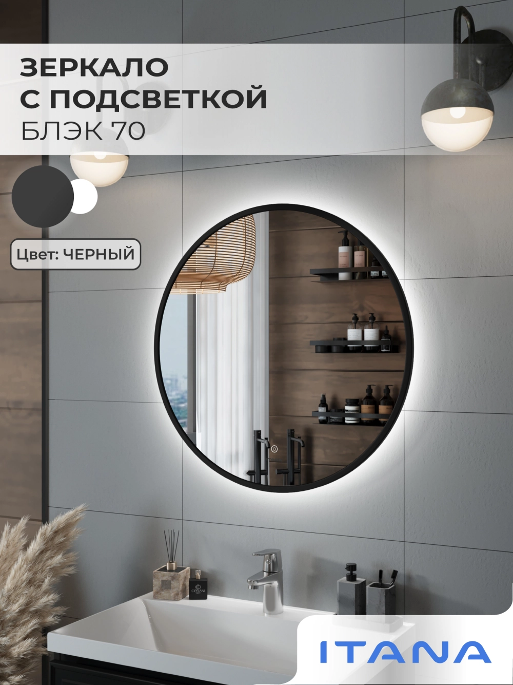 Зеркало с подсветкой ИТАНА Блэк 70, круглое, Черный