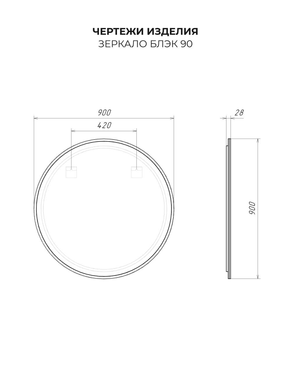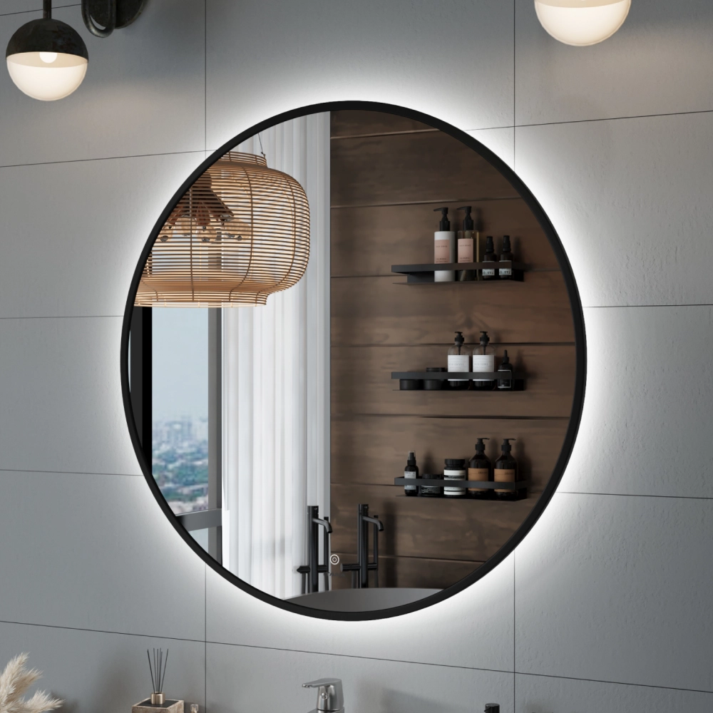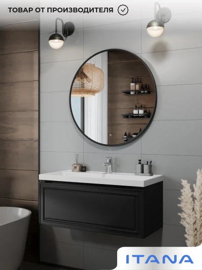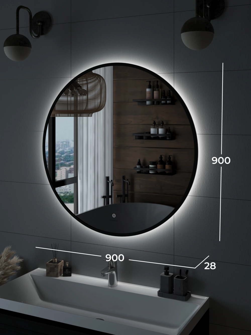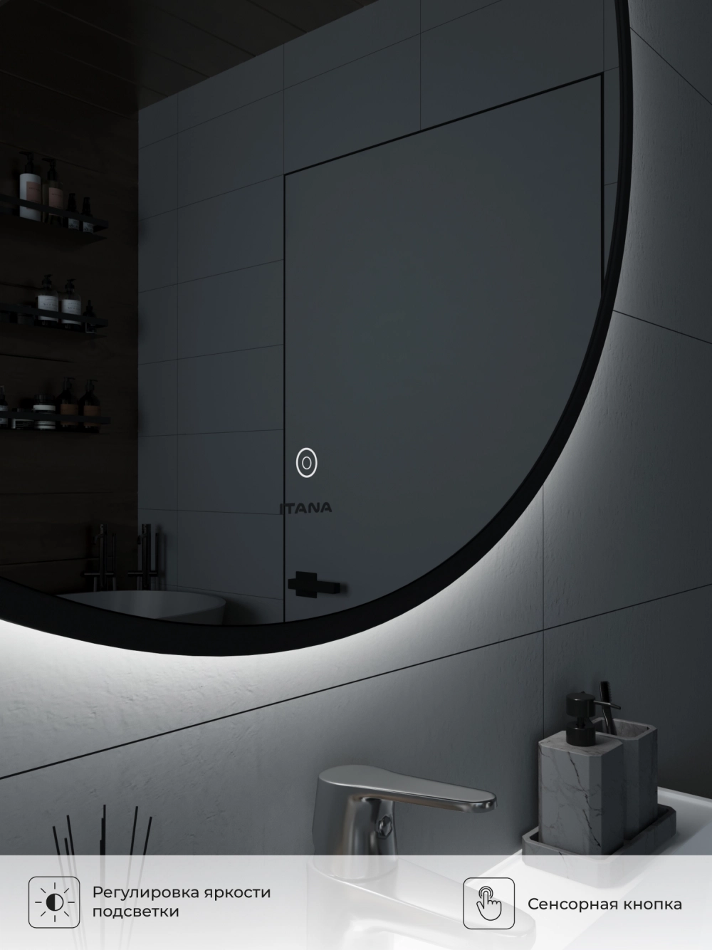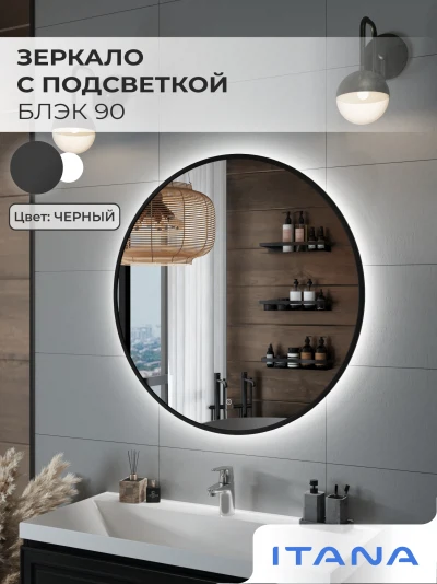 Зеркало с подсветкой ИТАНА Блэк 90, круглое, Черный