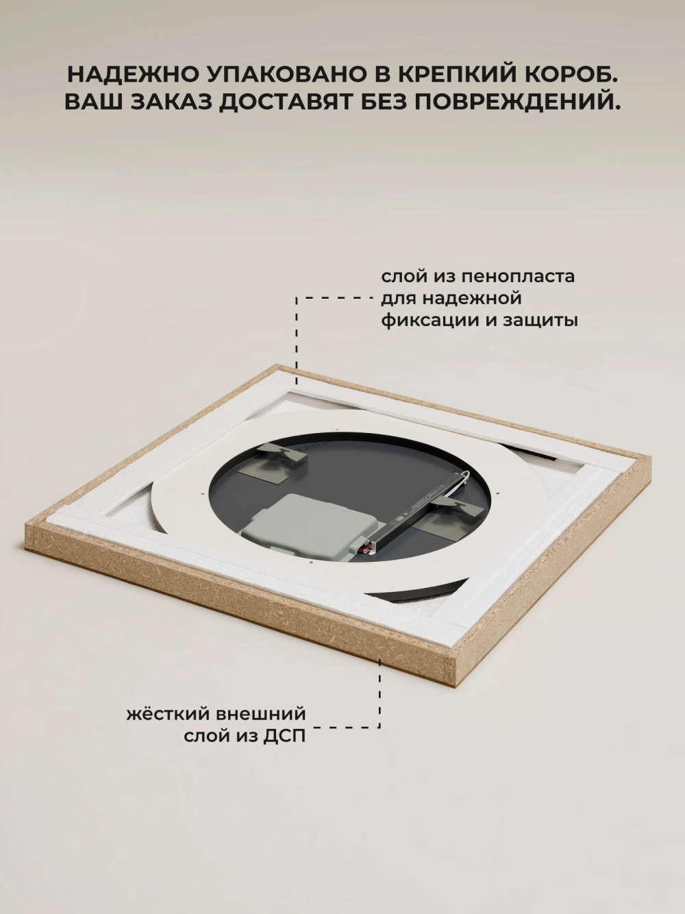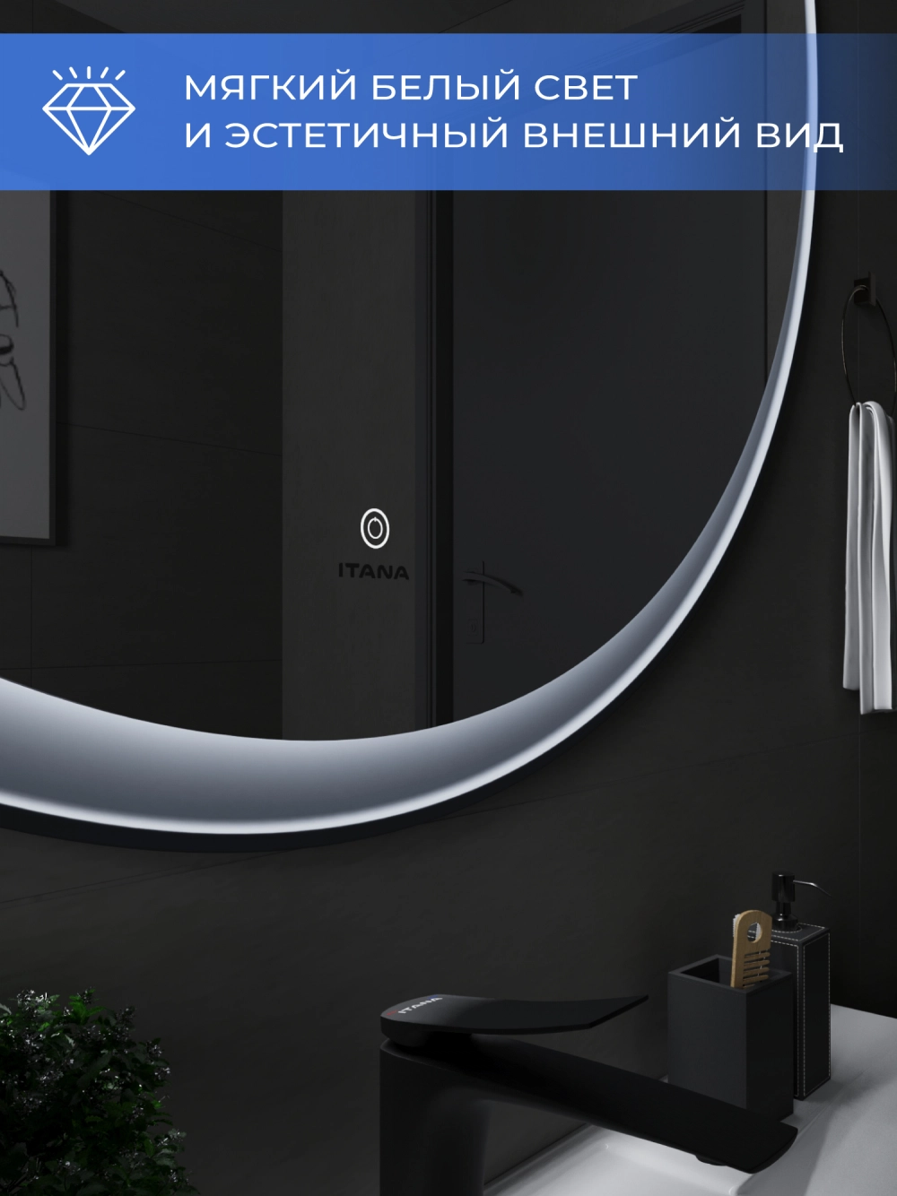 Зеркало с подсветкой в ванную Итана Kate 100, диаметр которого составляет 1000 мм, – это идеальное решение для современной ванной комнаты. Круглая форма зеркала и стильный дизайн подарят интерьеру визуальную легкость и гармонию, создавая ощущение простора. Удобное настенное крепление легко впишется в любое пространство, а высокоэффективная подсветка обеспечит яркость и комфорт при утренних сборках или вечерних ритуалах. Это зеркало для ванной с подсветкой не только эстетично, но и функционально. Встроенная светодиодная подсветка равномерно освещает лицо, что делает её незаменимым помощником в повседневном уходе за собой. Технология подсветки позволяет максимально точно передать цвета, что особенно важно для нанесения макияжа или бритья. Светодиоды, расположенные по периметру зеркала, имеют длительный срок службы, обеспечивая экономичное потребление электроэнергии. Зеркало настенное в ванную Итана Kate 100 изготовлено из высококачественных материалов, что гарантирует долговечность и безупречный внешний вид на протяжении многих лет. Его легко монтировать и поддерживать в чистоте – достаточно протереть поверхность мягкой тканью, чтобы вернуть блеск и чистоту. Зеркало в ванную комнату с подсветкой Итана Kate 100 украсит любой интерьер: от классического до современного. Его утонченный и лаконичный вид позволяет сочетать зеркало с любым стилем мебели и сантехники. Оно станет центральным элементом вашей ванной комнаты, делая помещение светлее и уютнее. Не упустите возможность преобразить вашу ванную комнату с помощью этого великолепного зеркала с подсветкой. Итана Kate 100 воплощает в себе практичность, функциональность и стиль, предлагая вам комфорт и эстетическое удовольствие каждый день.