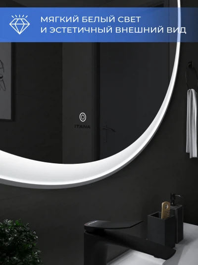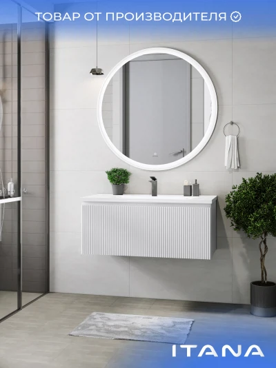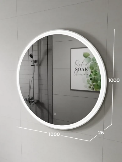 Зеркало с подсветкой в ванную Итана Kate 100, диаметр которого составляет 1000 мм, – это идеальное решение для современной ванной комнаты. Круглая форма зеркала и стильный дизайн подарят интерьеру визуальную легкость и гармонию, создавая ощущение простора. Удобное настенное крепление легко впишется в любое пространство, а высокоэффективная подсветка обеспечит яркость и комфорт при утренних сборках или вечерних ритуалах. Это зеркало для ванной с подсветкой не только эстетично, но и функционально. Встроенная светодиодная подсветка равномерно освещает лицо, что делает её незаменимым помощником в повседневном уходе за собой. Технология подсветки позволяет максимально точно передать цвета, что особенно важно для нанесения макияжа или бритья. Светодиоды, расположенные по периметру зеркала, имеют длительный срок службы, обеспечивая экономичное потребление электроэнергии. Зеркало настенное в ванную Итана Kate 100 изготовлено из высококачественных материалов, что гарантирует долговечность и безупречный внешний вид на протяжении многих лет. Его легко монтировать и поддерживать в чистоте – достаточно протереть поверхность мягкой тканью, чтобы вернуть блеск и чистоту. Зеркало в ванную комнату с подсветкой Итана Kate 100 украсит любой интерьер: от классического до современного. Его утонченный и лаконичный вид позволяет сочетать зеркало с любым стилем мебели и сантехники. Оно станет центральным элементом вашей ванной комнаты, делая помещение светлее и уютнее. Не упустите возможность преобразить вашу ванную комнату с помощью этого великолепного зеркала с подсветкой. Итана Kate 100 воплощает в себе практичность, функциональность и стиль, предлагая вам комфорт и эстетическое удовольствие каждый день.