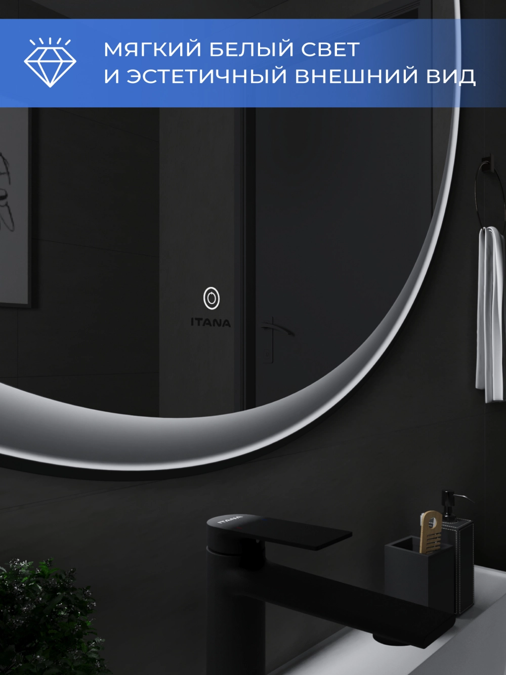 Зеркало с подсветкой в ванную Итана Kate 100, диаметр которого составляет 1000 мм, – это идеальное решение для современной ванной комнаты. Круглая форма зеркала и стильный дизайн подарят интерьеру визуальную легкость и гармонию, создавая ощущение простора. Удобное настенное крепление легко впишется в любое пространство, а высокоэффективная подсветка обеспечит яркость и комфорт при утренних сборках или вечерних ритуалах. Это зеркало для ванной с подсветкой не только эстетично, но и функционально. Встроенная светодиодная подсветка равномерно освещает лицо, что делает её незаменимым помощником в повседневном уходе за собой. Технология подсветки позволяет максимально точно передать цвета, что особенно важно для нанесения макияжа или бритья. Светодиоды, расположенные по периметру зеркала, имеют длительный срок службы, обеспечивая экономичное потребление электроэнергии. Зеркало настенное в ванную Итана Kate 100 изготовлено из высококачественных материалов, что гарантирует долговечность и безупречный внешний вид на протяжении многих лет. Его легко монтировать и поддерживать в чистоте – достаточно протереть поверхность мягкой тканью, чтобы вернуть блеск и чистоту. Зеркало в ванную комнату с подсветкой Итана Kate 100 украсит любой интерьер: от классического до современного. Его утонченный и лаконичный вид позволяет сочетать зеркало с любым стилем мебели и сантехники. Оно станет центральным элементом вашей ванной комнаты, делая помещение светлее и уютнее. Не упустите возможность преобразить вашу ванную комнату с помощью этого великолепного зеркала с подсветкой. Итана Kate 100 воплощает в себе практичность, функциональность и стиль, предлагая вам комфорт и эстетическое удовольствие каждый день.