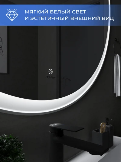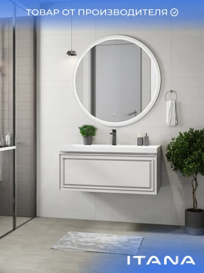 Зеркало с подсветкой в ванную Итана Kate 100, диаметр которого составляет 1000 мм, – это идеальное решение для современной ванной комнаты. Круглая форма зеркала и стильный дизайн подарят интерьеру визуальную легкость и гармонию, создавая ощущение простора. Удобное настенное крепление легко впишется в любое пространство, а высокоэффективная подсветка обеспечит яркость и комфорт при утренних сборках или вечерних ритуалах. Это зеркало для ванной с подсветкой не только эстетично, но и функционально. Встроенная светодиодная подсветка равномерно освещает лицо, что делает её незаменимым помощником в повседневном уходе за собой. Технология подсветки позволяет максимально точно передать цвета, что особенно важно для нанесения макияжа или бритья. Светодиоды, расположенные по периметру зеркала, имеют длительный срок службы, обеспечивая экономичное потребление электроэнергии. Зеркало настенное в ванную Итана Kate 100 изготовлено из высококачественных материалов, что гарантирует долговечность и безупречный внешний вид на протяжении многих лет. Его легко монтировать и поддерживать в чистоте – достаточно протереть поверхность мягкой тканью, чтобы вернуть блеск и чистоту. Зеркало в ванную комнату с подсветкой Итана Kate 100 украсит любой интерьер: от классического до современного. Его утонченный и лаконичный вид позволяет сочетать зеркало с любым стилем мебели и сантехники. Оно станет центральным элементом вашей ванной комнаты, делая помещение светлее и уютнее. Не упустите возможность преобразить вашу ванную комнату с помощью этого великолепного зеркала с подсветкой. Итана Kate 100 воплощает в себе практичность, функциональность и стиль, предлагая вам комфорт и эстетическое удовольствие каждый день.