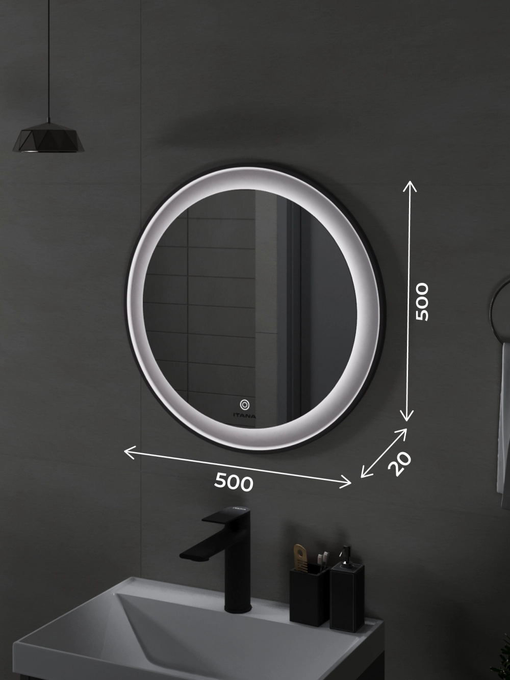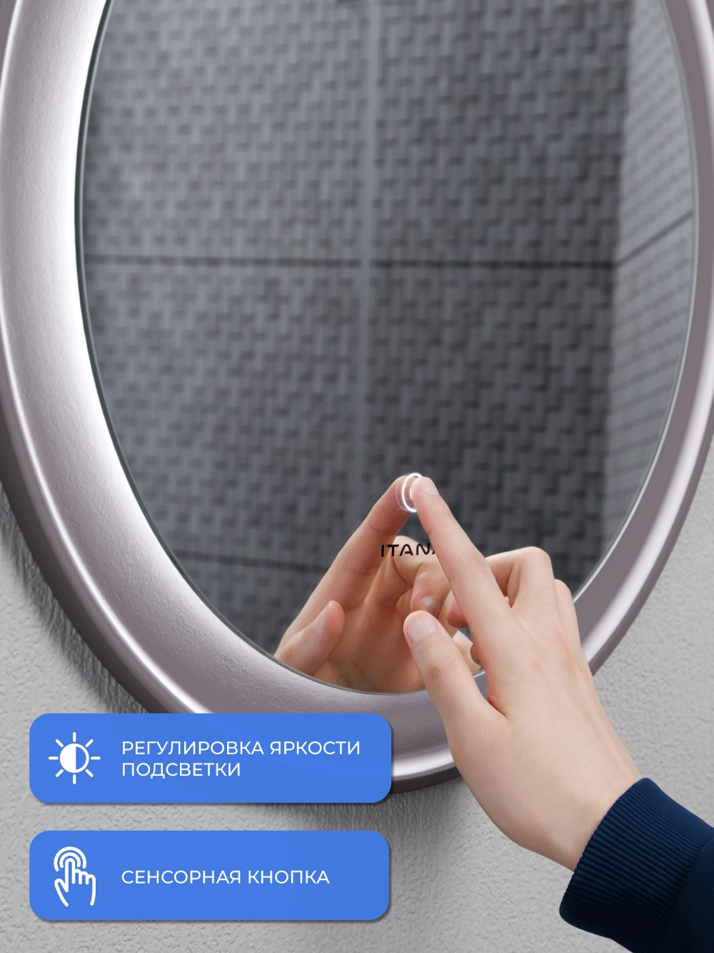 Зеркало с подсветкой в ванную Итана Kate 50, диаметр которого составляет 500 мм, – это идеальное решение для современной ванной комнаты. Круглая форма зеркала и стильный дизайн подарят интерьеру визуальную легкость и гармонию, создавая ощущение простора. Удобное настенное крепление легко впишется в любое пространство, а высокоэффективная подсветка обеспечит яркость и комфорт при утренних сборках или вечерних ритуалах. Это зеркало для ванной с подсветкой не только эстетично, но и функционально. Встроенная светодиодная подсветка равномерно освещает лицо, что делает её незаменимым помощником в повседневном уходе за собой. Технология подсветки позволяет максимально точно передать цвета, что особенно важно для нанесения макияжа или бритья. Светодиоды, расположенные по периметру зеркала, имеют длительный срок службы, обеспечивая экономичное потребление электроэнергии. Зеркало настенное в ванную Итана Kate 50 изготовлено из высококачественных материалов, что гарантирует долговечность и безупречный внешний вид на протяжении многих лет. Его легко монтировать и поддерживать в чистоте – достаточно протереть поверхность мягкой тканью, чтобы вернуть блеск и чистоту. Зеркало в ванную комнату с подсветкой Итана Kate 50 украсит любой интерьер: от классического до современного. Его утонченный и лаконичный вид позволяет сочетать зеркало с любым стилем мебели и сантехники. Оно станет центральным элементом вашей ванной комнаты, делая помещение светлее и уютнее. Не упустите возможность преобразить вашу ванную комнату с помощью этого великолепного зеркала с подсветкой. Итана Kate 50 воплощает в себе практичность, функциональность и стиль, предлагая вам комфорт и эстетическое удовольствие каждый день.