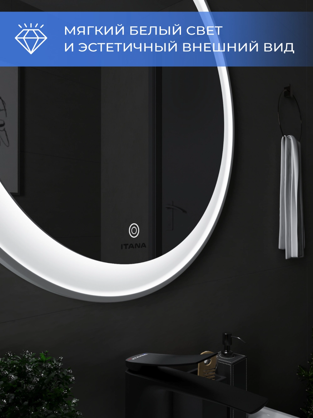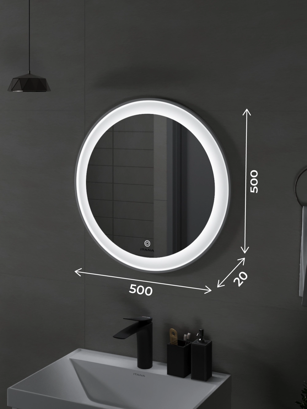 Зеркало с подсветкой в ванную Итана Kate 50, диаметр которого составляет 500 мм, – это идеальное решение для современной ванной комнаты. Круглая форма зеркала и стильный дизайн подарят интерьеру визуальную легкость и гармонию, создавая ощущение простора. Удобное настенное крепление легко впишется в любое пространство, а высокоэффективная подсветка обеспечит яркость и комфорт при утренних сборках или вечерних ритуалах. Это зеркало для ванной с подсветкой не только эстетично, но и функционально. Встроенная светодиодная подсветка равномерно освещает лицо, что делает её незаменимым помощником в повседневном уходе за собой. Технология подсветки позволяет максимально точно передать цвета, что особенно важно для нанесения макияжа или бритья. Светодиоды, расположенные по периметру зеркала, имеют длительный срок службы, обеспечивая экономичное потребление электроэнергии. Зеркало настенное в ванную Итана Kate 50 изготовлено из высококачественных материалов, что гарантирует долговечность и безупречный внешний вид на протяжении многих лет. Его легко монтировать и поддерживать в чистоте – достаточно протереть поверхность мягкой тканью, чтобы вернуть блеск и чистоту. Зеркало в ванную комнату с подсветкой Итана Kate 50 украсит любой интерьер: от классического до современного. Его утонченный и лаконичный вид позволяет сочетать зеркало с любым стилем мебели и сантехники. Оно станет центральным элементом вашей ванной комнаты, делая помещение светлее и уютнее. Не упустите возможность преобразить вашу ванную комнату с помощью этого великолепного зеркала с подсветкой. Итана Kate 50 воплощает в себе практичность, функциональность и стиль, предлагая вам комфорт и эстетическое удовольствие каждый день.