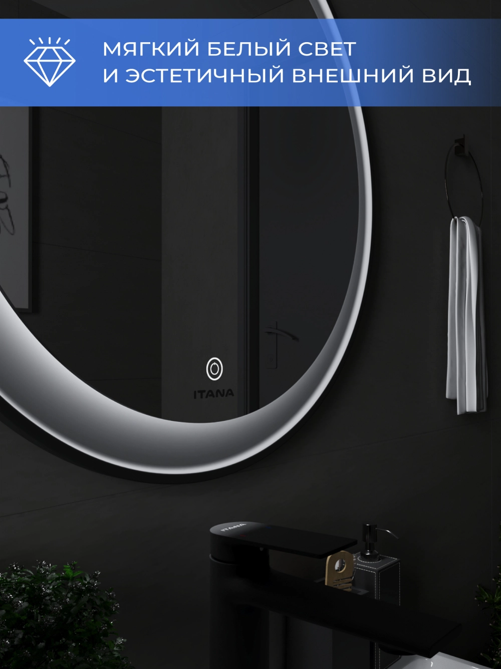 Зеркало с подсветкой в ванную Итана Kate 50, диаметр которого составляет 500 мм, – это идеальное решение для современной ванной комнаты. Круглая форма зеркала и стильный дизайн подарят интерьеру визуальную легкость и гармонию, создавая ощущение простора. Удобное настенное крепление легко впишется в любое пространство, а высокоэффективная подсветка обеспечит яркость и комфорт при утренних сборках или вечерних ритуалах. Это зеркало для ванной с подсветкой не только эстетично, но и функционально. Встроенная светодиодная подсветка равномерно освещает лицо, что делает её незаменимым помощником в повседневном уходе за собой. Технология подсветки позволяет максимально точно передать цвета, что особенно важно для нанесения макияжа или бритья. Светодиоды, расположенные по периметру зеркала, имеют длительный срок службы, обеспечивая экономичное потребление электроэнергии. Зеркало настенное в ванную Итана Kate 50 изготовлено из высококачественных материалов, что гарантирует долговечность и безупречный внешний вид на протяжении многих лет. Его легко монтировать и поддерживать в чистоте – достаточно протереть поверхность мягкой тканью, чтобы вернуть блеск и чистоту. Зеркало в ванную комнату с подсветкой Итана Kate 50 украсит любой интерьер: от классического до современного. Его утонченный и лаконичный вид позволяет сочетать зеркало с любым стилем мебели и сантехники. Оно станет центральным элементом вашей ванной комнаты, делая помещение светлее и уютнее. Не упустите возможность преобразить вашу ванную комнату с помощью этого великолепного зеркала с подсветкой. Итана Kate 50 воплощает в себе практичность, функциональность и стиль, предлагая вам комфорт и эстетическое удовольствие каждый день.