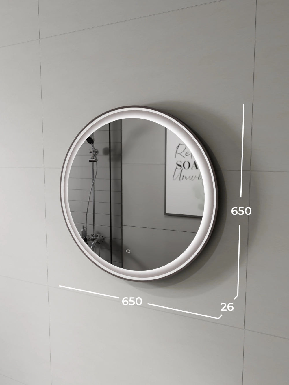 Зеркало с подсветкой в ванную Итана Kate 65, диаметр которого составляет 650 мм – это идеальное решение для современной ванной комнаты. Круглая форма зеркала и стильный дизайн подарят интерьеру визуальную легкость. Встроенная светодиодная подсветка равномерно освещает, что делает её незаменимым помощником в повседневном уходе за собой. Светодиоды, расположенные по периметру зеркала, имеют длительный срок службы, обеспечивая экономичное потребление электроэнергии. Зеркало настенное в ванную Итана Kate 65 изготовлено из высококачественных материалов, что гарантирует долговечность и безупречный внешний вид на протяжении многих лет. Для точного выбора настенного зеркала в ванную комнату рекомендуем обратиться к схеме замеров, которая находится на фото в карточке товара, размеры изделия могут отличаться +/-1 см в связи со спецификой производства. Зеркало с подсветкой доставляется в предварительно собранном виде, надежно упаковано.