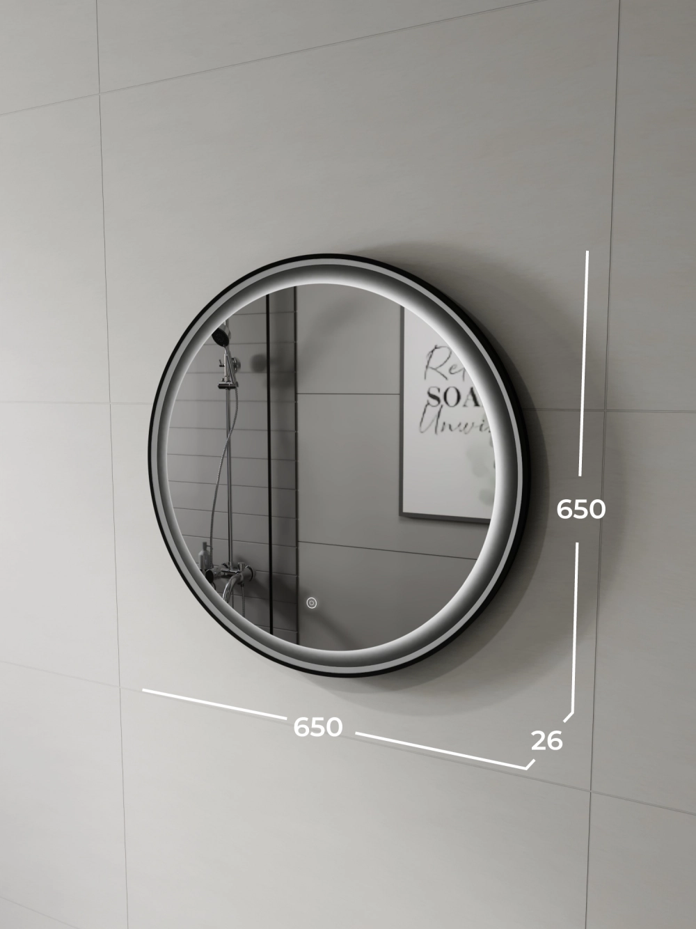 Зеркало с подсветкой Итана Kate 65 Черный софт