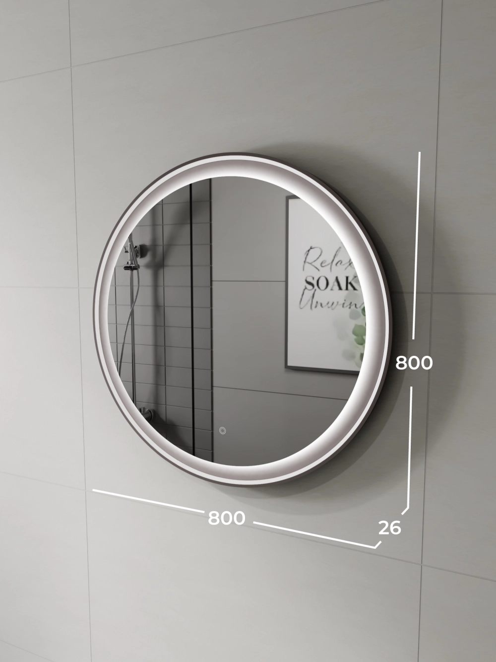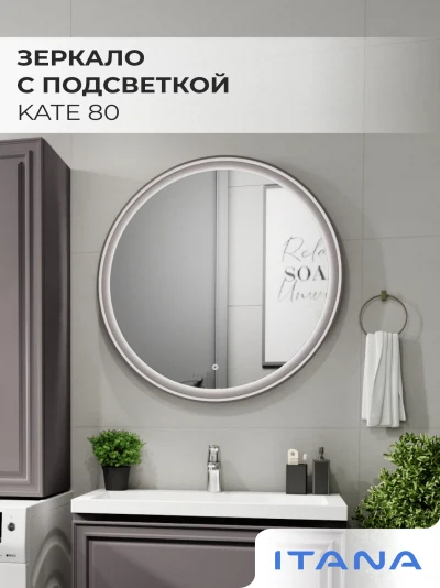 Зеркало с подсветкой в ванную Итана Kate 80, диаметр которого составляет 800 мм – это идеальное решение для современной ванной комнаты. Круглая форма зеркала и стильный дизайн подарят интерьеру визуальную легкость. Встроенная светодиодная подсветка равномерно освещает, что делает её незаменимым помощником в повседневном уходе за собой. Светодиоды, расположенные по периметру зеркала, имеют длительный срок службы, обеспечивая экономичное потребление электроэнергии. Зеркало настенное в ванную Итана Kate 80 изготовлено из высококачественных материалов, что гарантирует долговечность и безупречный внешний вид на протяжении многих лет. Для точного выбора настенного зеркала в ванную комнату рекомендуем обратиться к схеме замеров, которая находится на фото в карточке товара, размеры изделия могут отличаться +/-1 см в связи со спецификой производства. Зеркало с подсветкой доставляется в предварительно собранном виде, надежно упаковано.