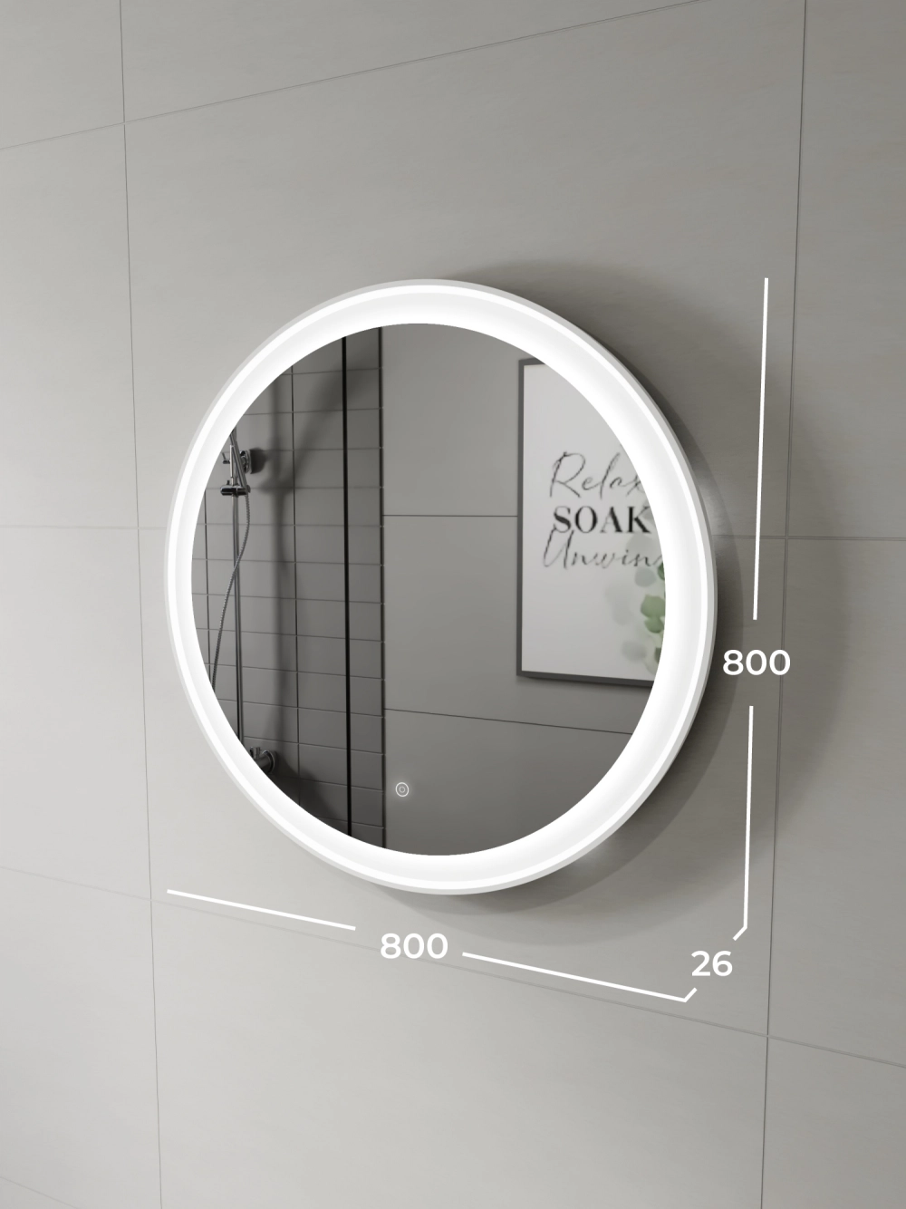 Зеркало с подсветкой в ванную Итана Kate 80, диаметр которого составляет 800 мм – это идеальное решение для современной ванной комнаты. Круглая форма зеркала и стильный дизайн подарят интерьеру визуальную легкость. Встроенная светодиодная подсветка равномерно освещает, что делает её незаменимым помощником в повседневном уходе за собой. Светодиоды, расположенные по периметру зеркала, имеют длительный срок службы, обеспечивая экономичное потребление электроэнергии. Зеркало настенное в ванную Итана Kate 80 изготовлено из высококачественных материалов, что гарантирует долговечность и безупречный внешний вид на протяжении многих лет. Для точного выбора настенного зеркала в ванную комнату рекомендуем обратиться к схеме замеров, которая находится на фото в карточке товара, размеры изделия могут отличаться +/-1 см в связи со спецификой производства. Зеркало с подсветкой доставляется в предварительно собранном виде, надежно упаковано.