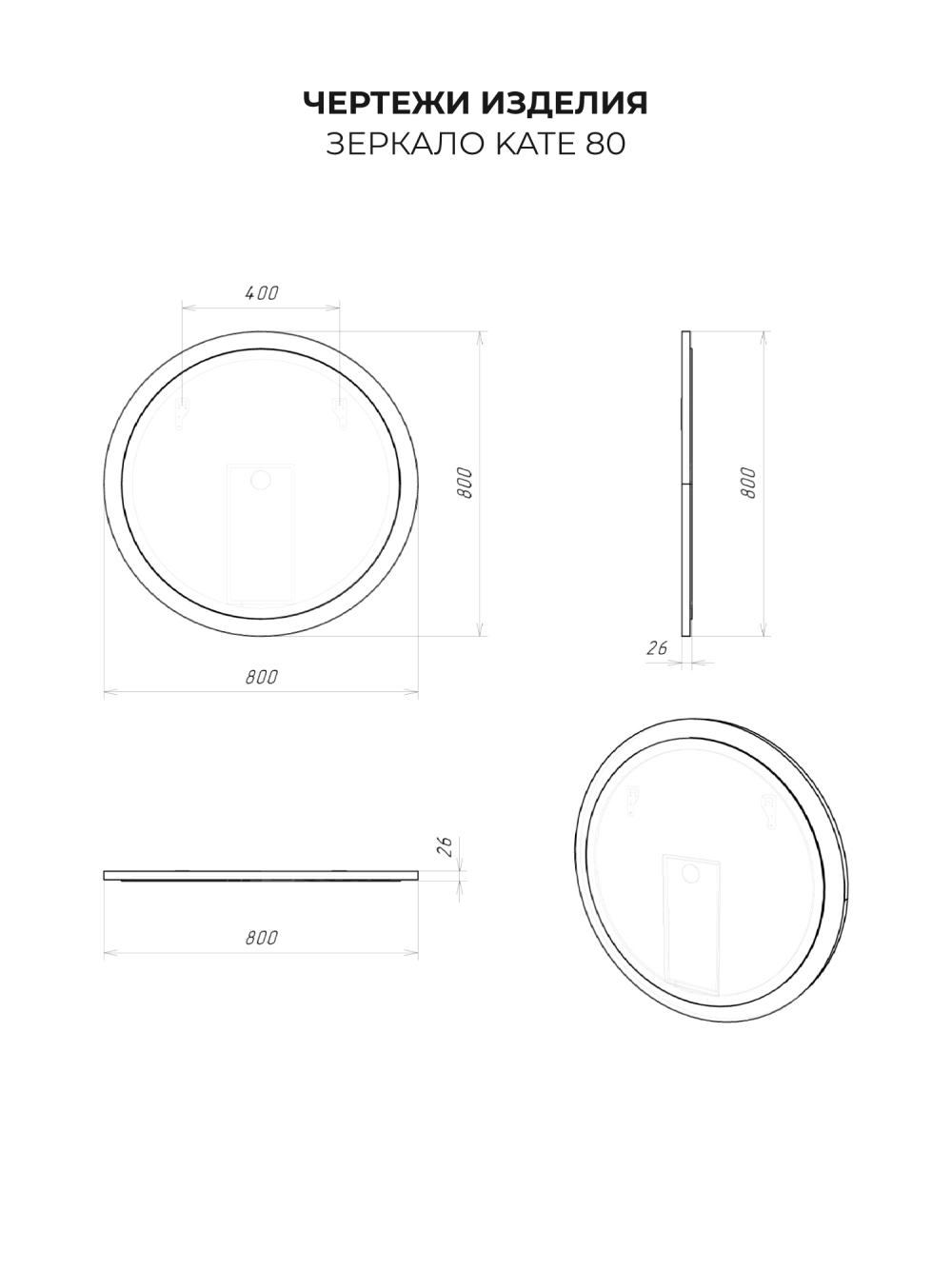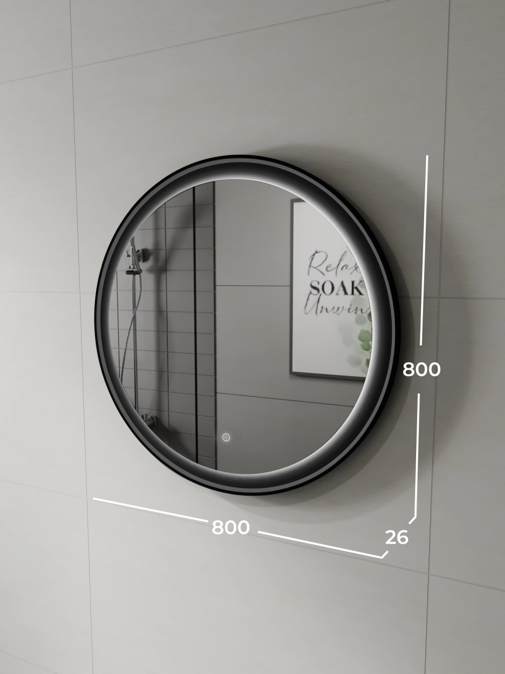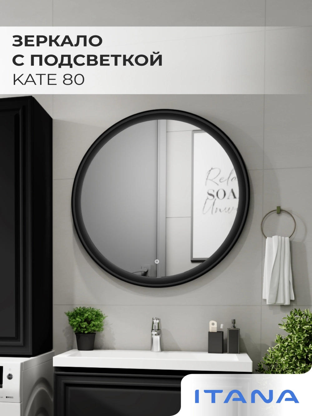Зеркало с подсветкой Итана Kate 80 Черный софт