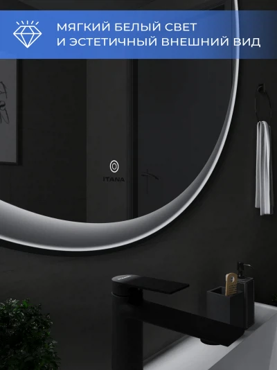 Зеркало с подсветкой в ванную Итана Kate 90, диаметр которого составляет 900 мм, – это идеальное решение для современной ванной комнаты. Круглая форма зеркала и стильный дизайн подарят интерьеру визуальную легкость и гармонию, создавая ощущение простора. Удобное настенное крепление легко впишется в любое пространство, а высокоэффективная подсветка обеспечит яркость и комфорт при утренних сборках или вечерних ритуалах. Это зеркало для ванной с подсветкой не только эстетично, но и функционально. Встроенная светодиодная подсветка равномерно освещает лицо, что делает её незаменимым помощником в повседневном уходе за собой. Технология подсветки позволяет максимально точно передать цвета, что особенно важно для нанесения макияжа или бритья. Светодиоды, расположенные по периметру зеркала, имеют длительный срок службы, обеспечивая экономичное потребление электроэнергии. Зеркало настенное в ванную Итана Kate 90 изготовлено из высококачественных материалов, что гарантирует долговечность и безупречный внешний вид на протяжении многих лет. Его легко монтировать и поддерживать в чистоте – достаточно протереть поверхность мягкой тканью, чтобы вернуть блеск и чистоту. Зеркало в ванную комнату с подсветкой Итана Kate 90 украсит любой интерьер: от классического до современного. Его утонченный и лаконичный вид позволяет сочетать зеркало с любым стилем мебели и сантехники. Оно станет центральным элементом вашей ванной комнаты, делая помещение светлее и уютнее. Не упустите возможность преобразить вашу ванную комнату с помощью этого великолепного зеркала с подсветкой. Итана Kate 90 воплощает в себе практичность, функциональность и стиль, предлагая вам комфорт и эстетическое удовольствие каждый день.