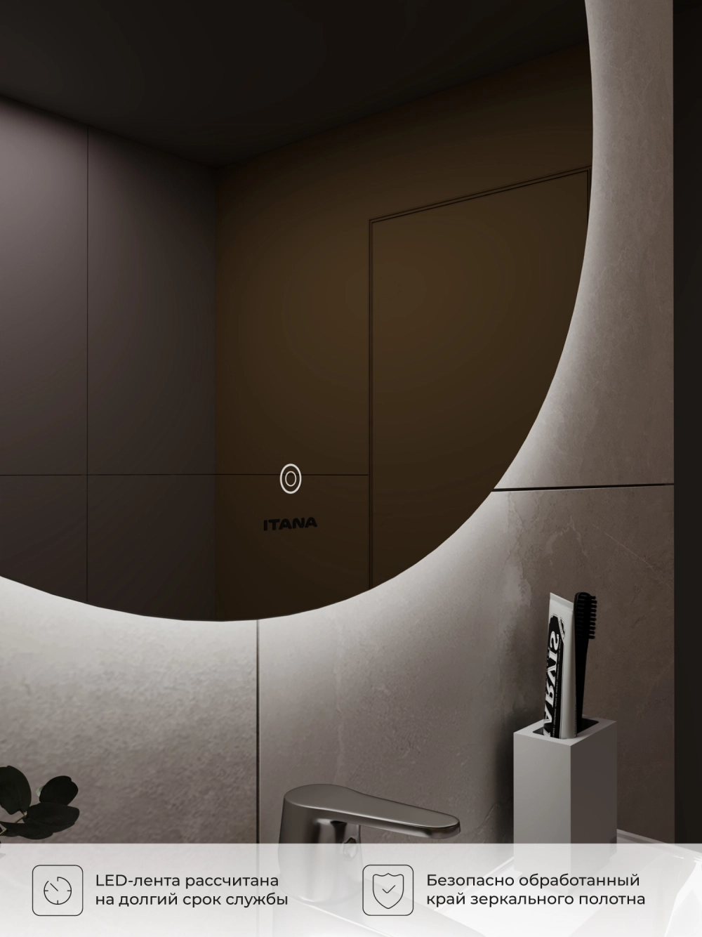 Зеркало с подсветкой Итана Oreol изготовлено из зеркального полотна толщиной 4 мм. Край зеркала в ванную обработан евро-кромкой. Настенное зеркало в ванную - современная и лаконичная по дизайну модель с удобным сенсорным управлением подсветки. При изготовлении используется светодиодная лента с плотностью диодов 120 шт./м и мощностью 9,6 Вт/м, цветовая температура 6000К (холодный свет) создающая мягкое и равномерное свечение по периметру зеркала. Подсветка рассчитана на 25 000 часов работы в непрерывном режиме. Зеркало с подсветкой может использоваться в помещениях с повышенной влажностью воздуха. В комплекте предусмотрен настенный крепеж. Для точного выбора зеркала с подсветкой в ванную комнату рекомендуем обратиться к схеме замеров, которая находится на фото в карточке товара, размеры изделия могут отличаться +/-1 см в связи со спецификой производства. Настенное зеркало с подственной для ванной доставляется в предварительно собранном виде, надежно упаковано.